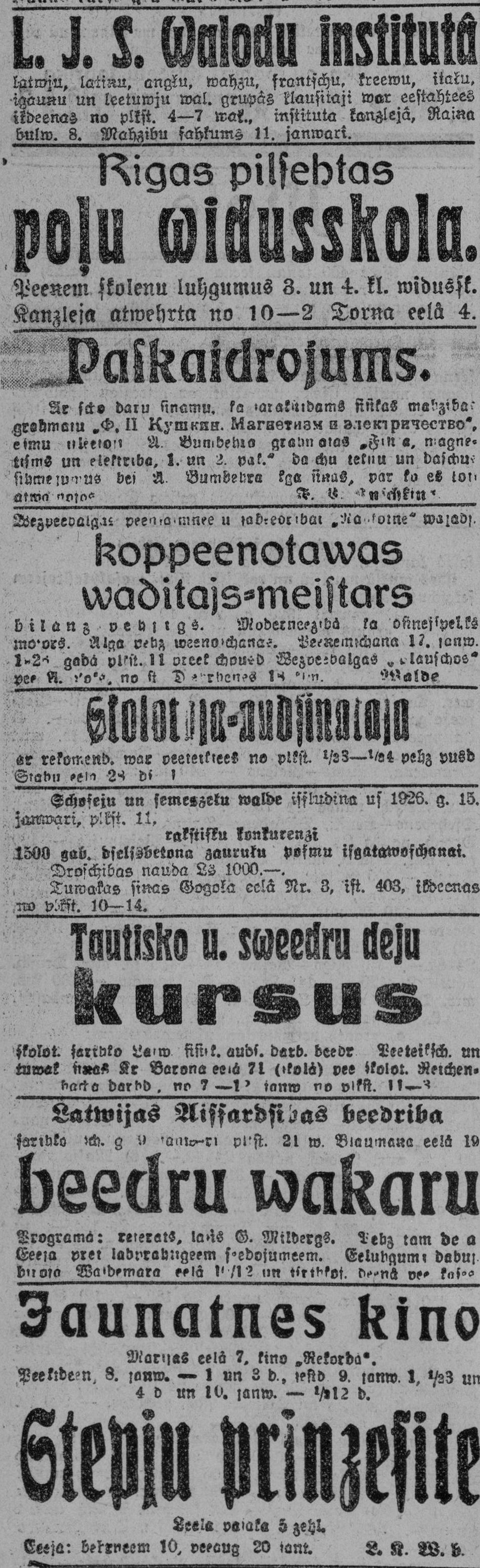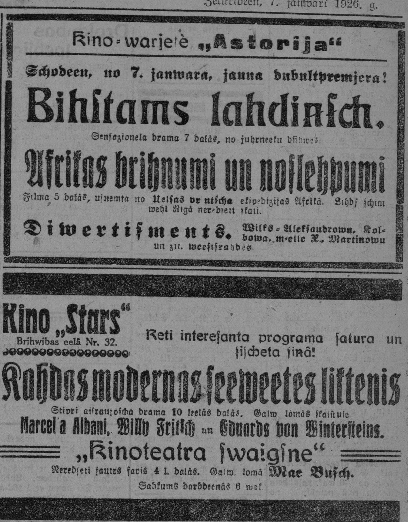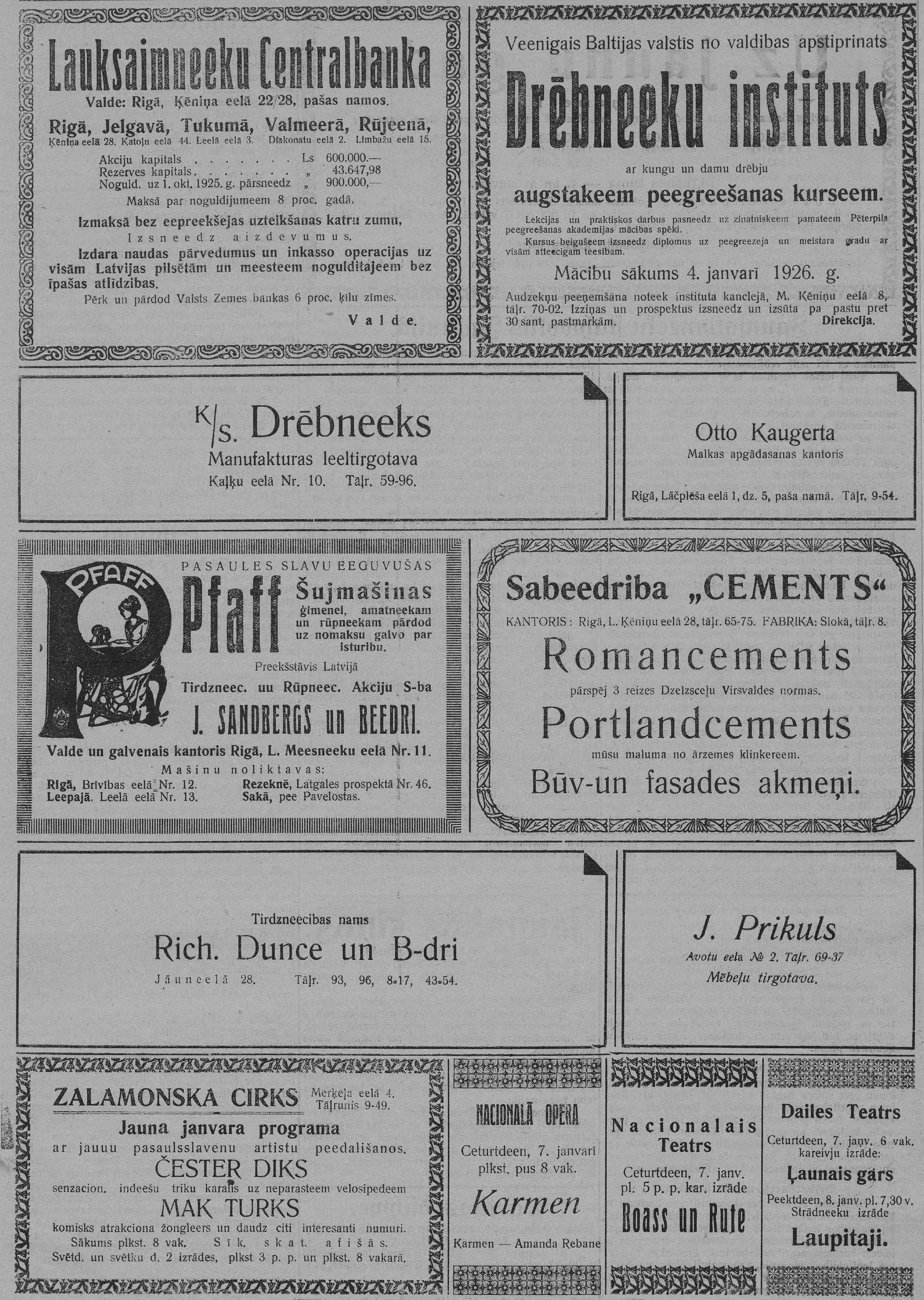 Ceturtdien, 1926. gada 7. janvāris