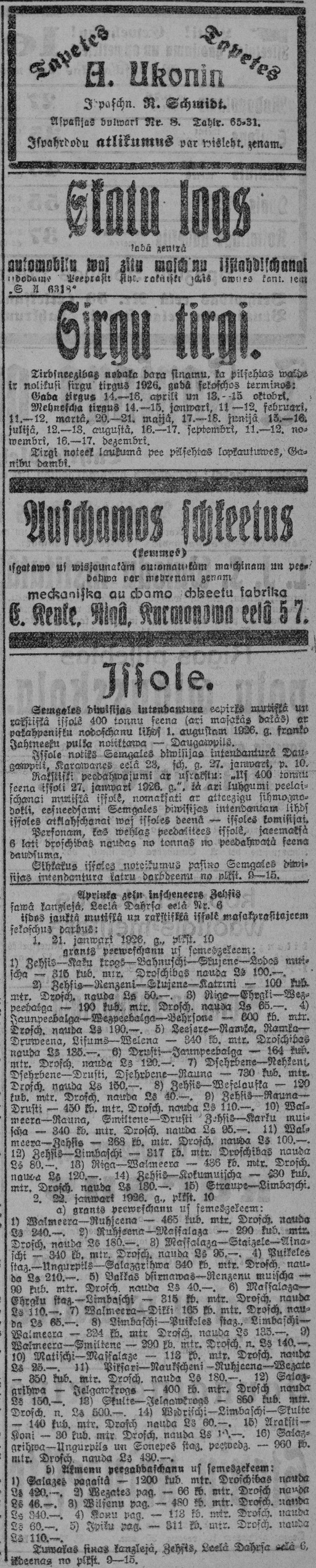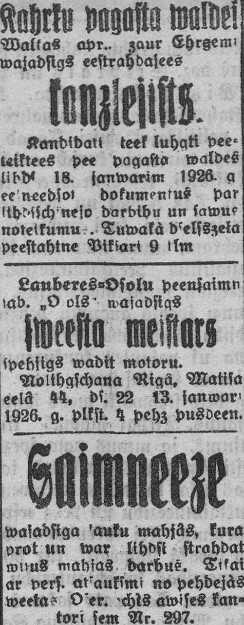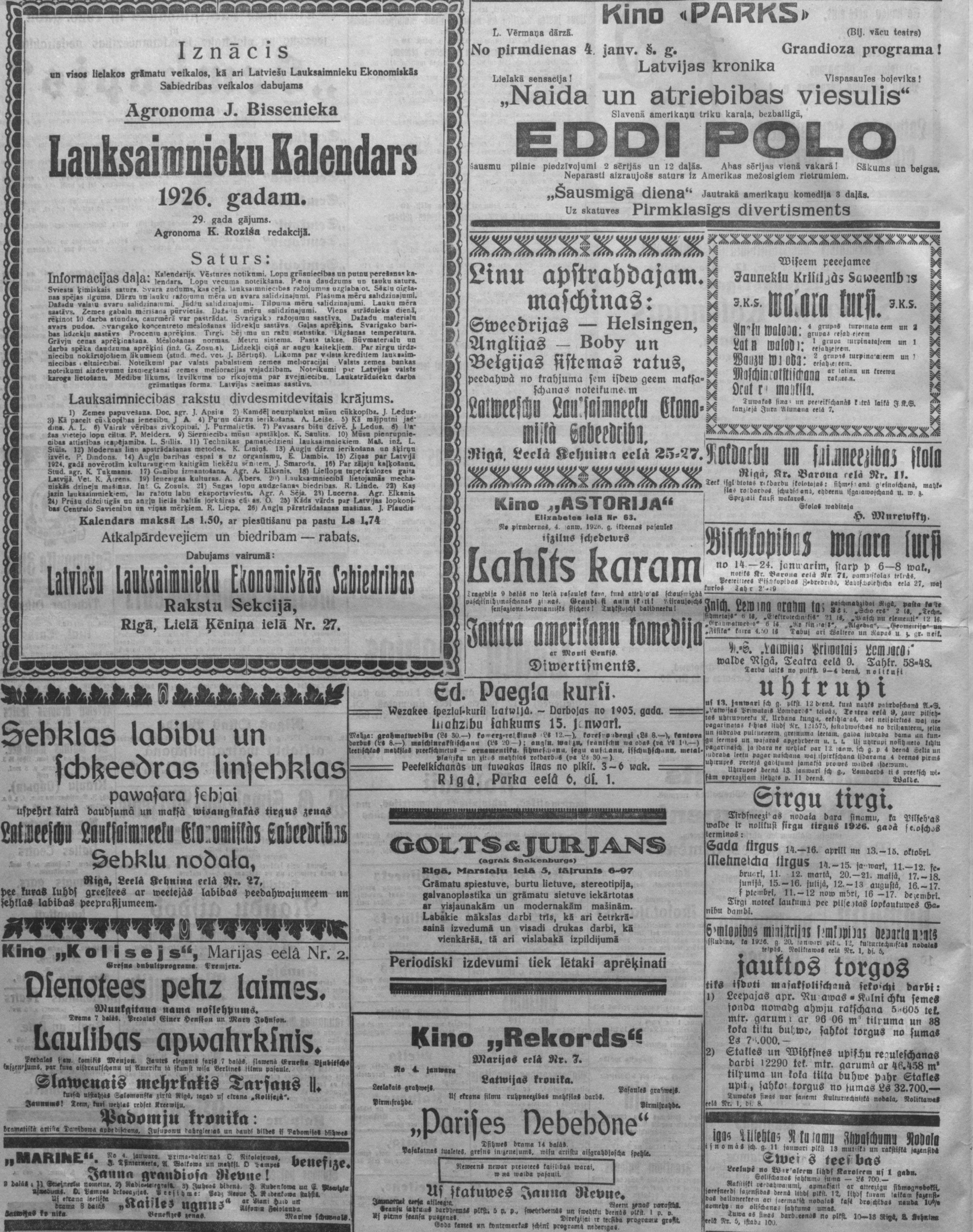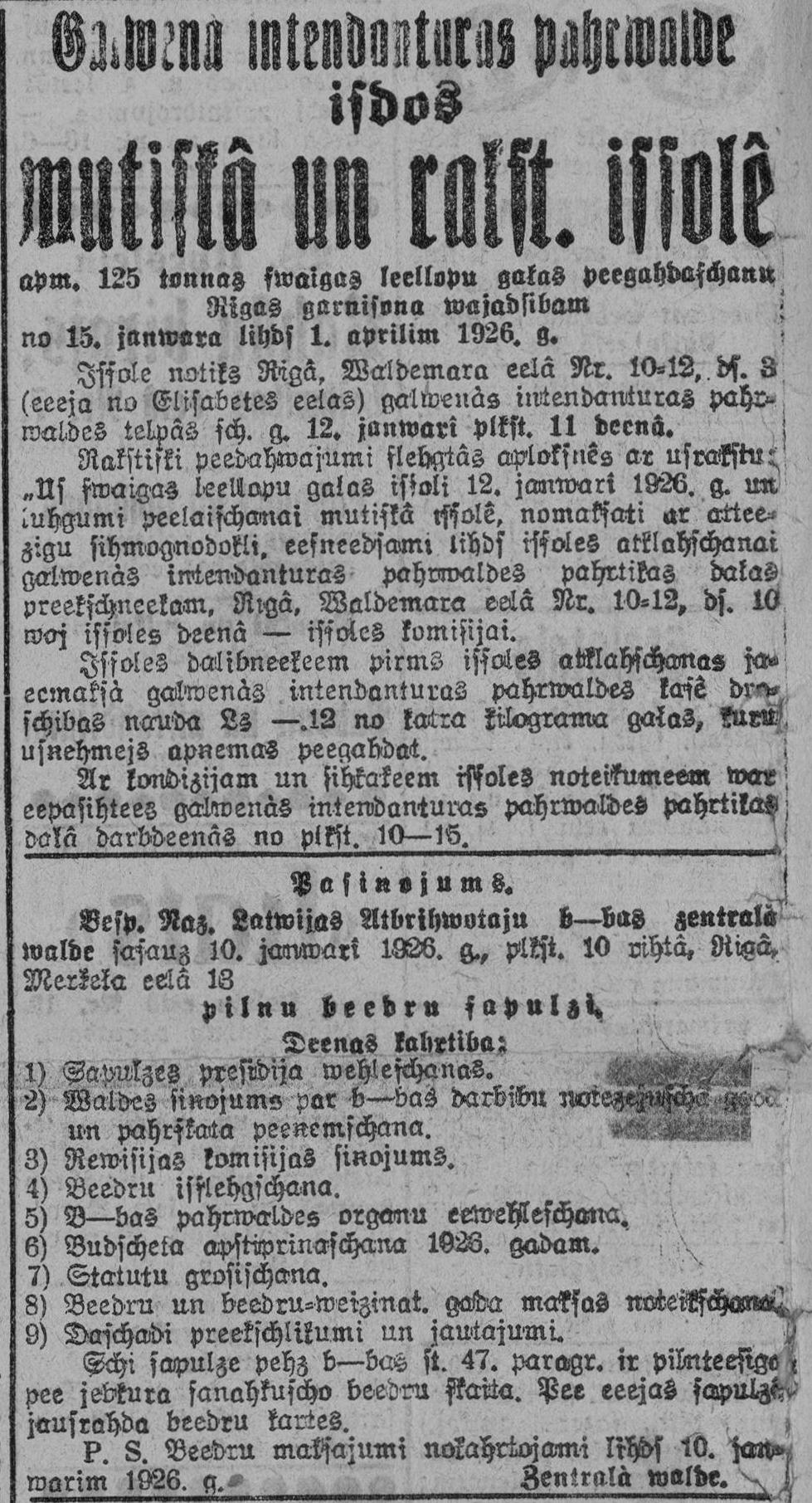 Ceturtdien, 1926. gada 7. janvāris