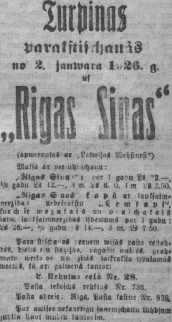 Rīgas Ziņas apvienotas ar Latvijas Vēstnesi, №4
