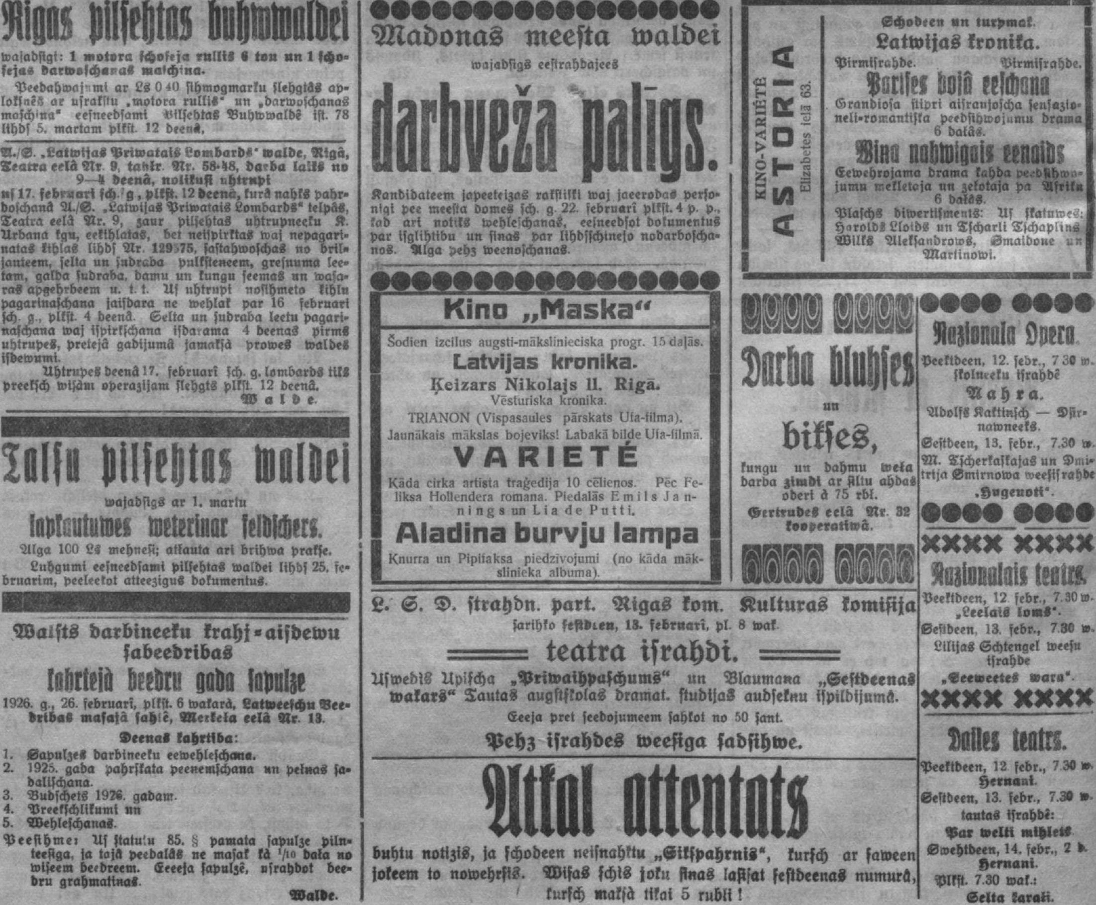 Piektdien, 1926. gada 12. februāris