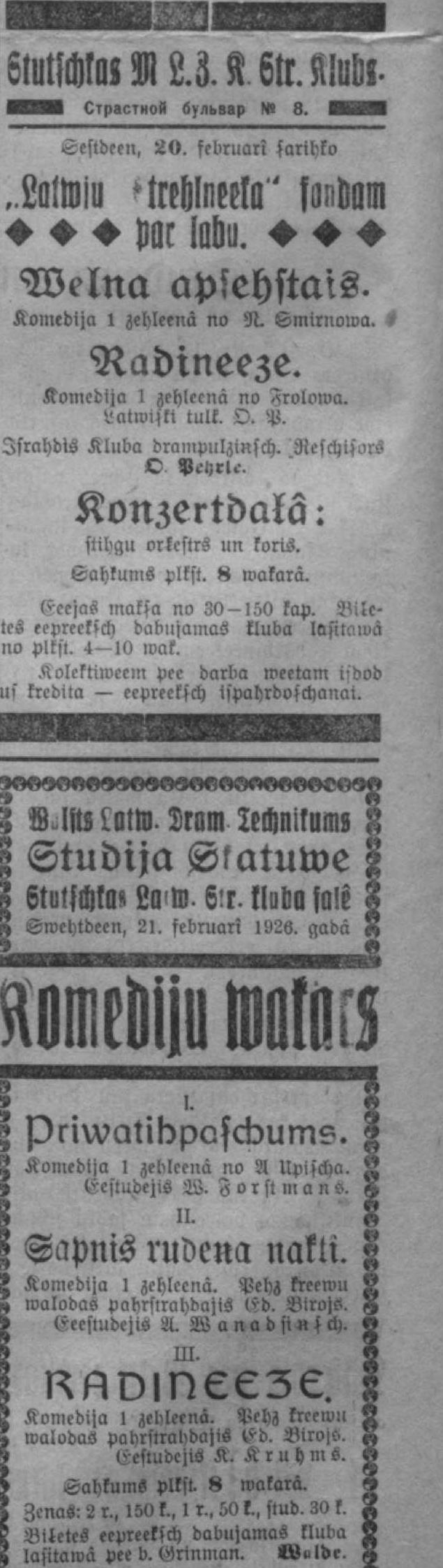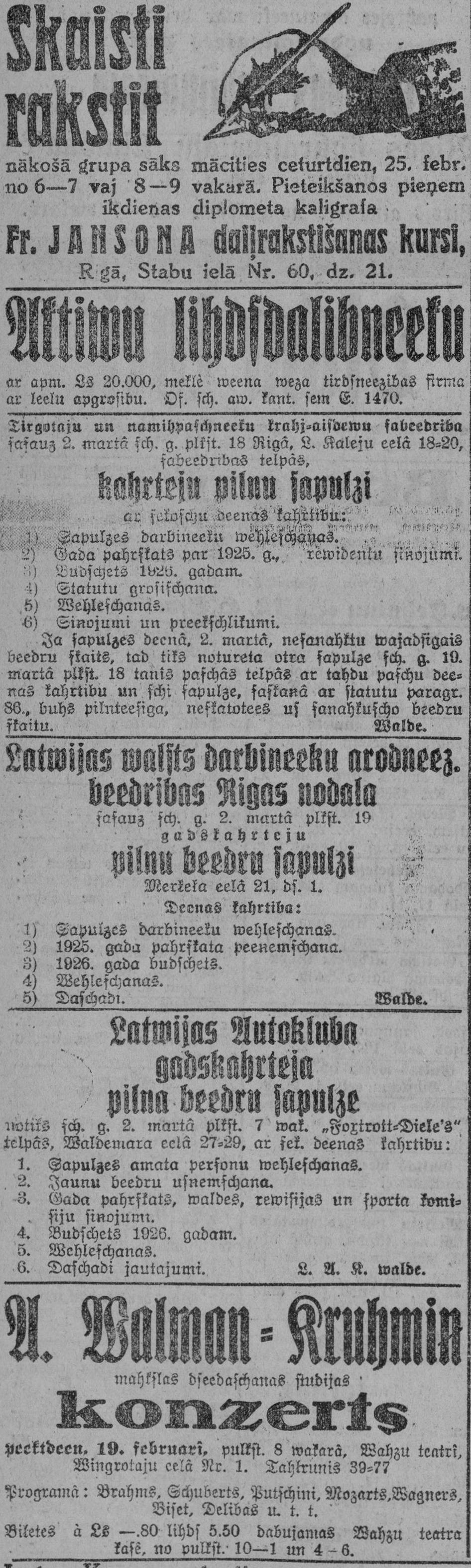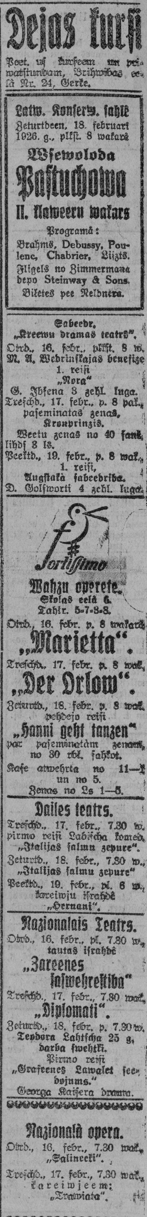 Otrdien, 1926. gada 16. februāris