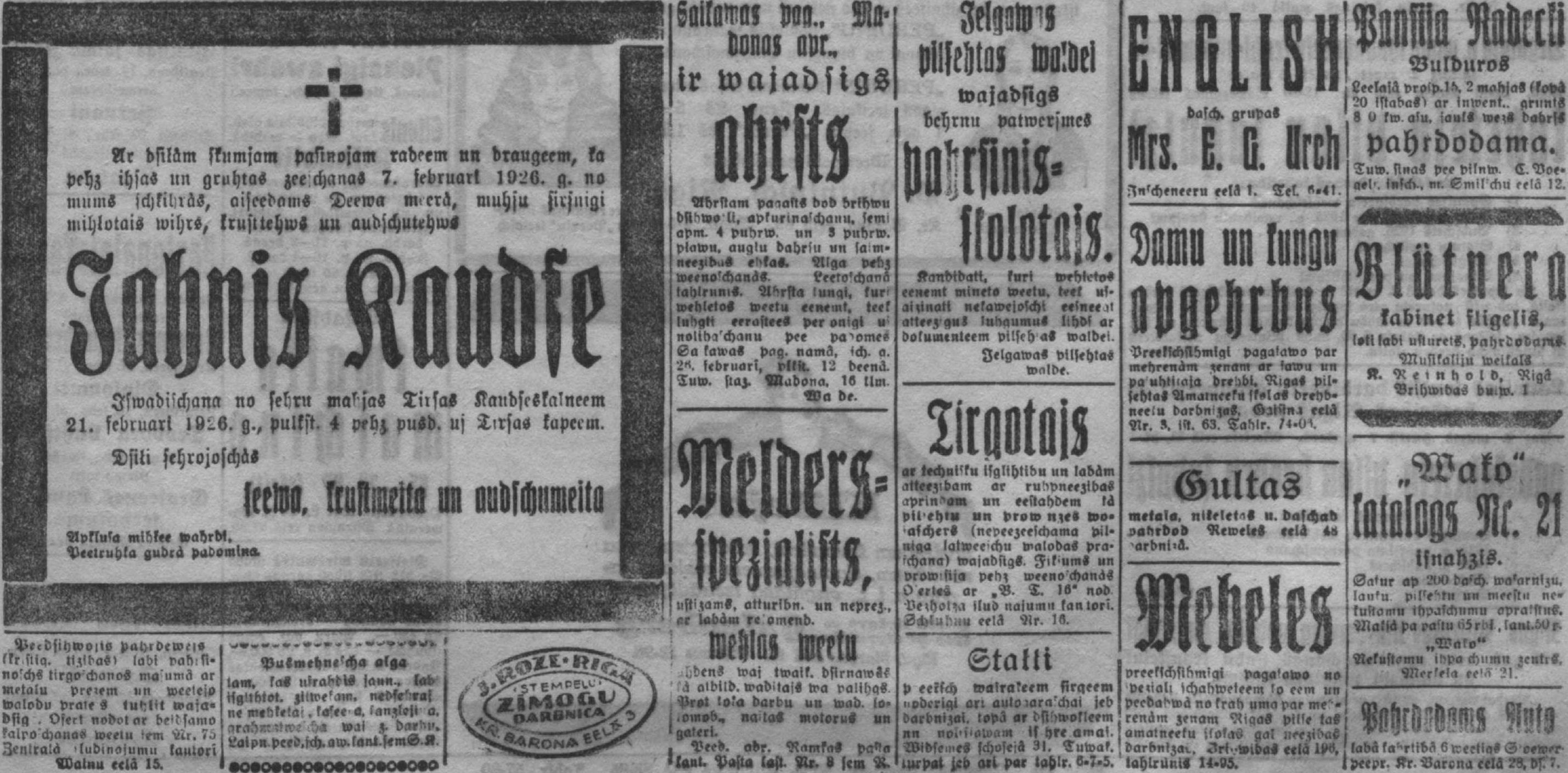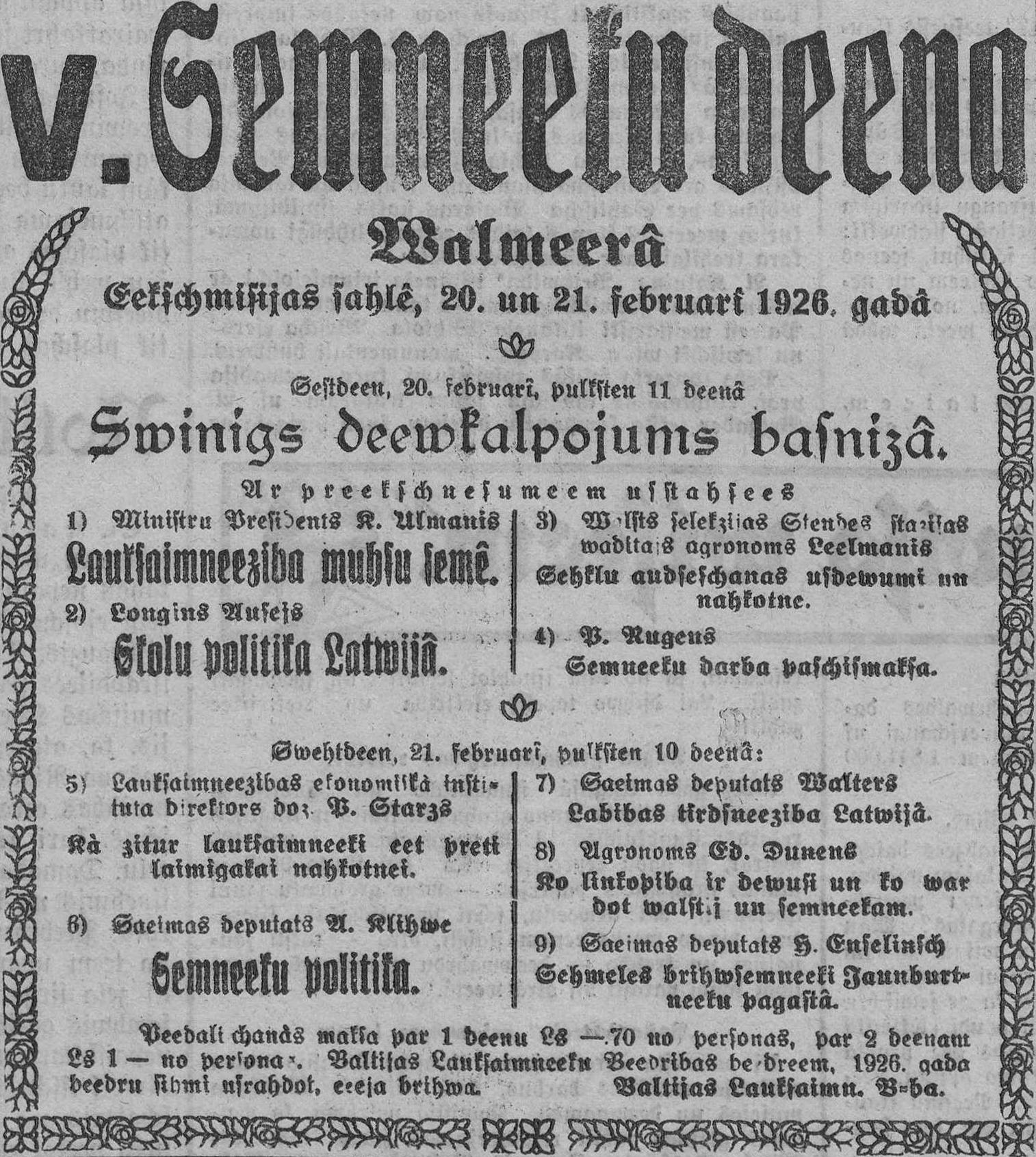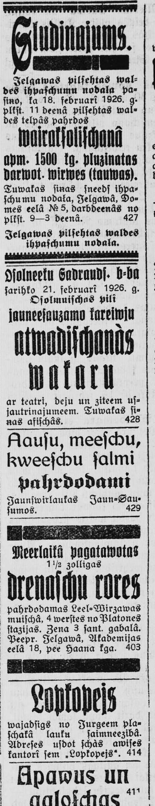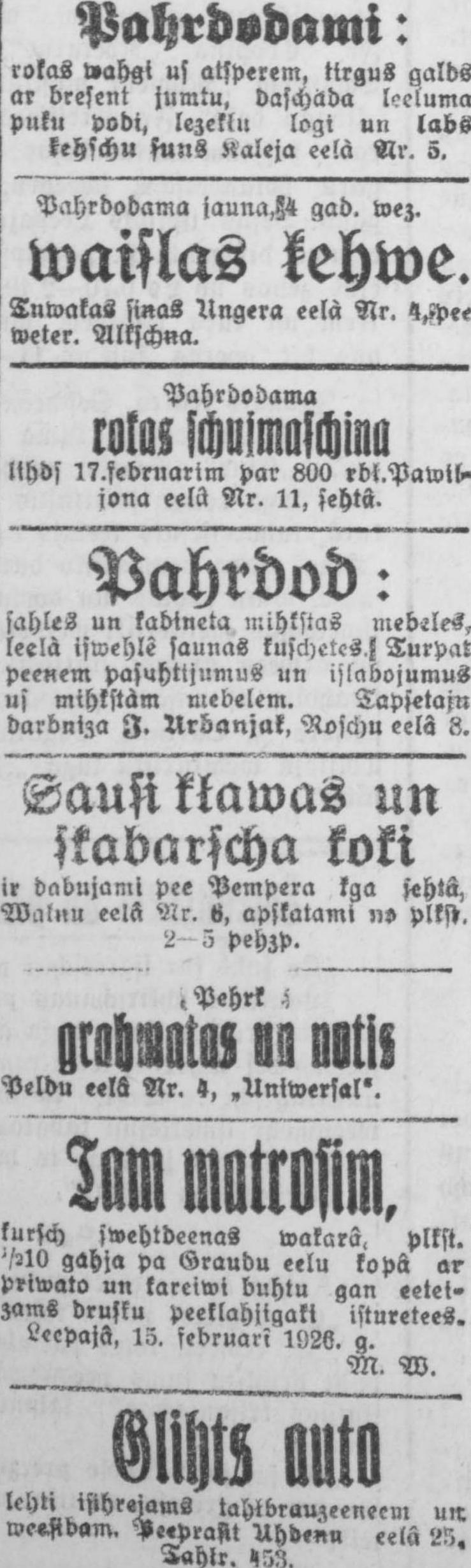 Otrdien, 1926. gada 16. februāris