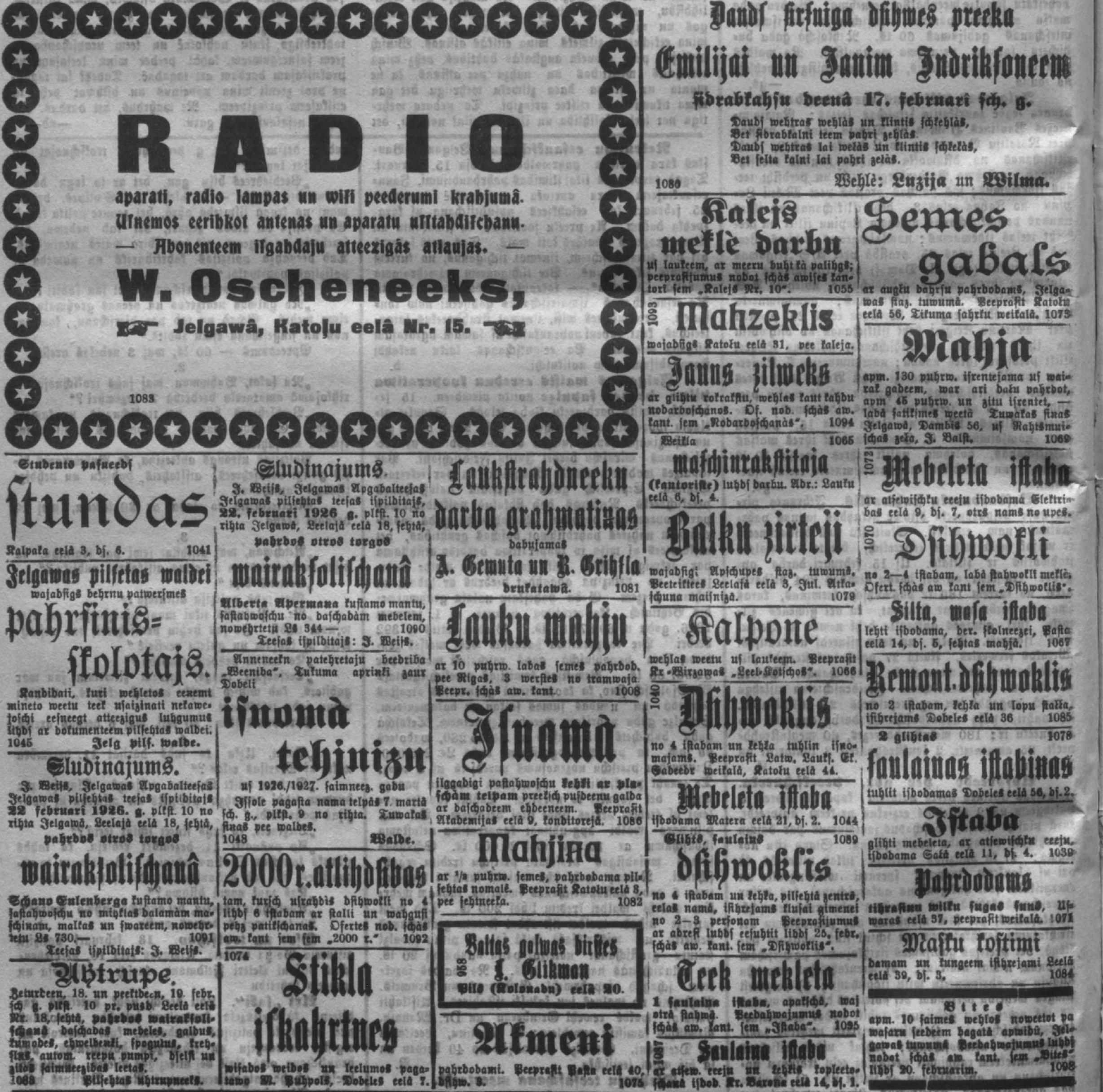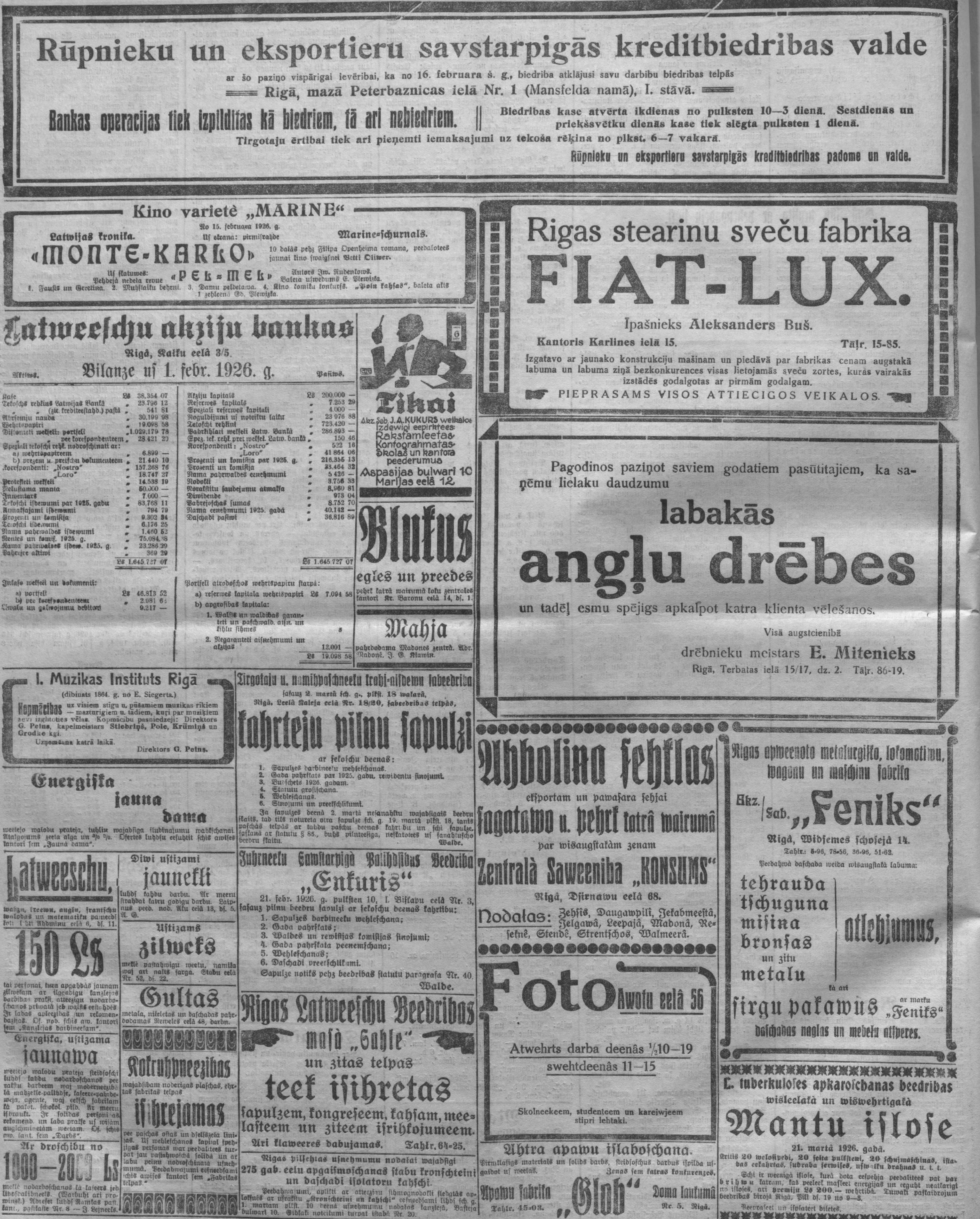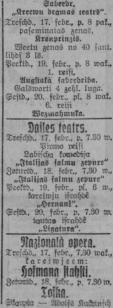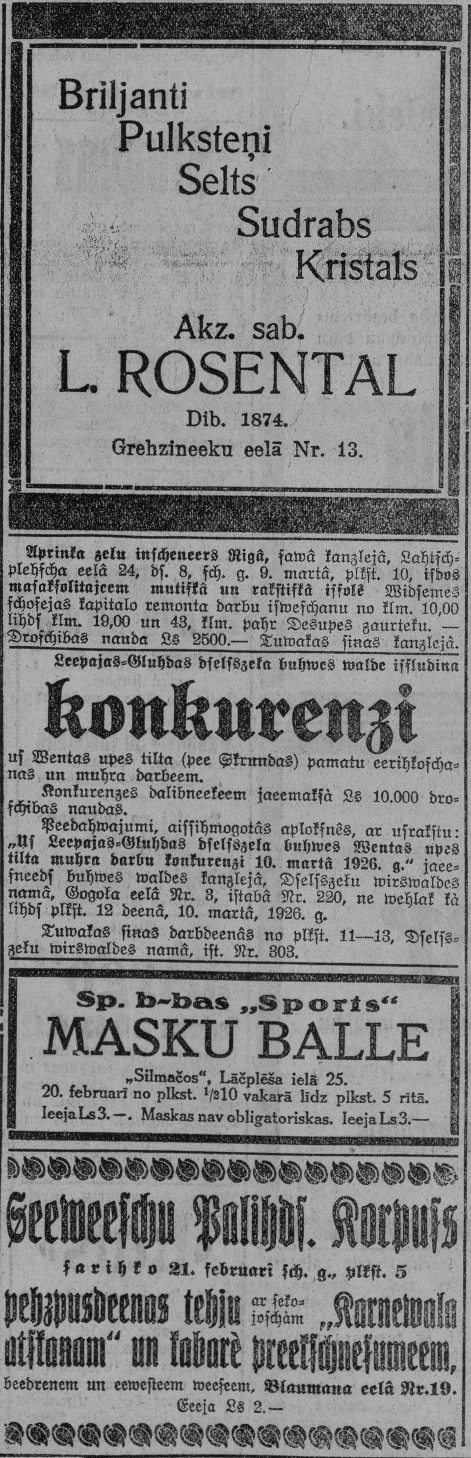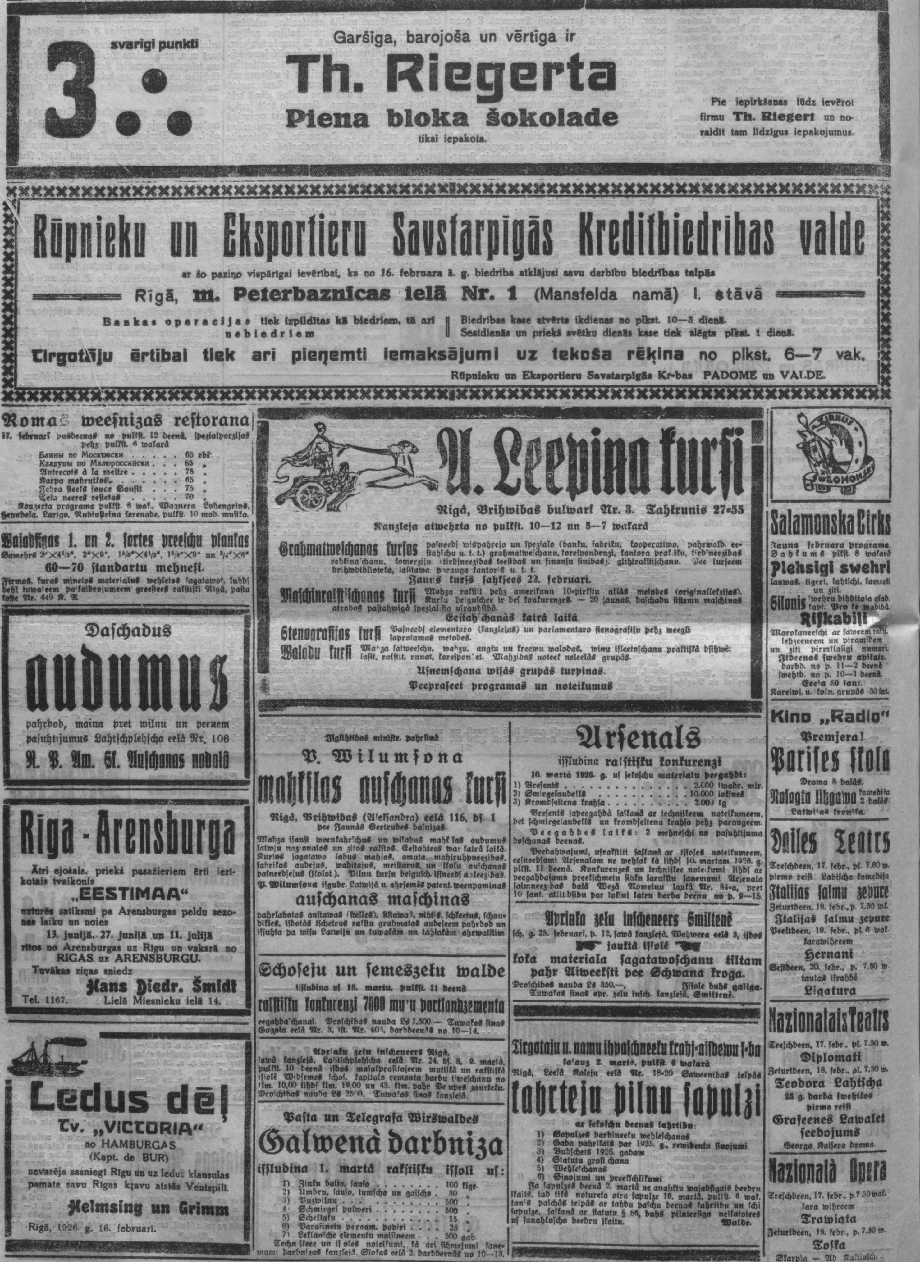 Trešdien, 1926. gada 17. februāris