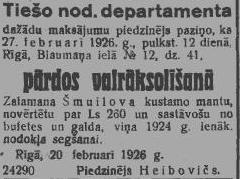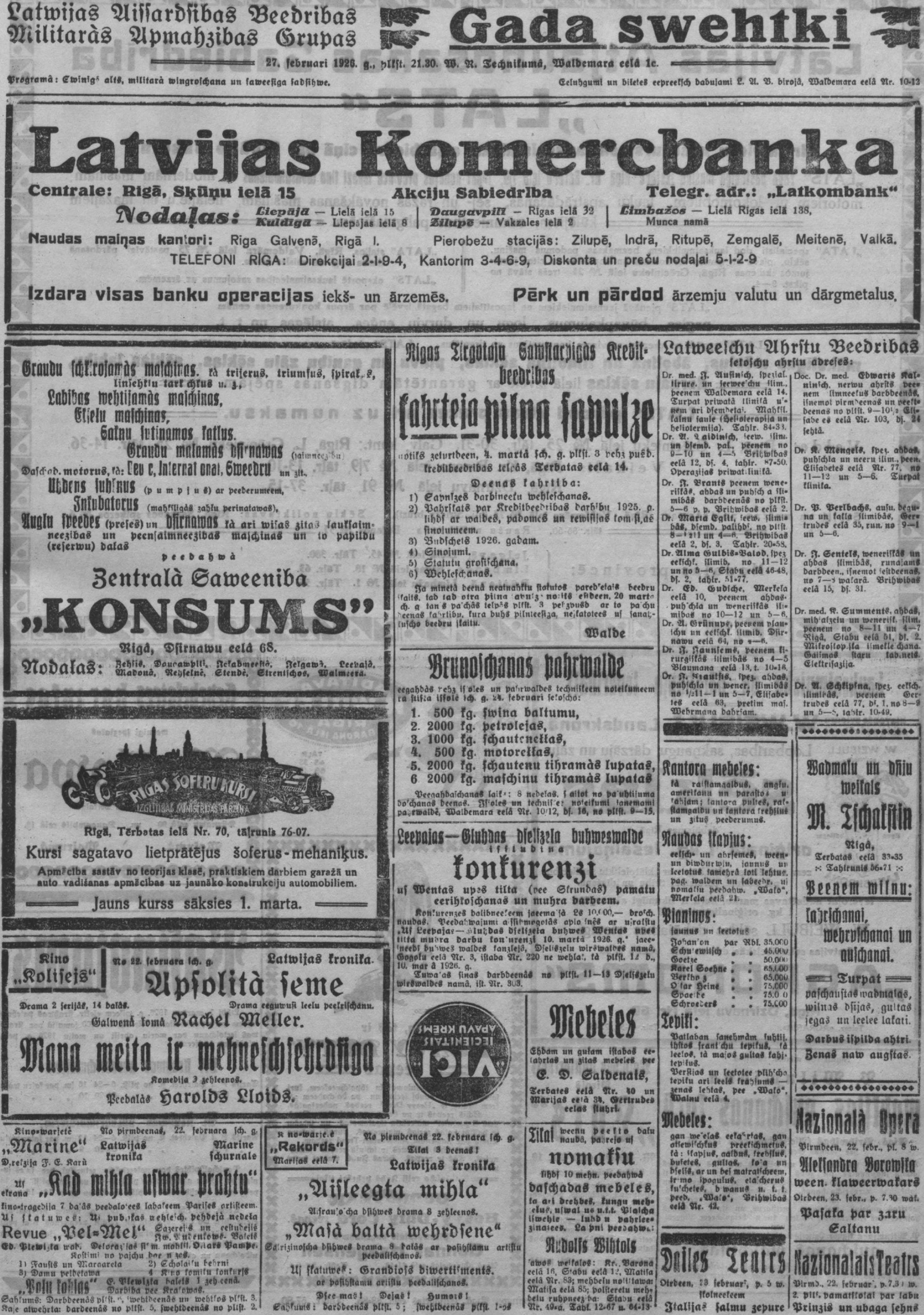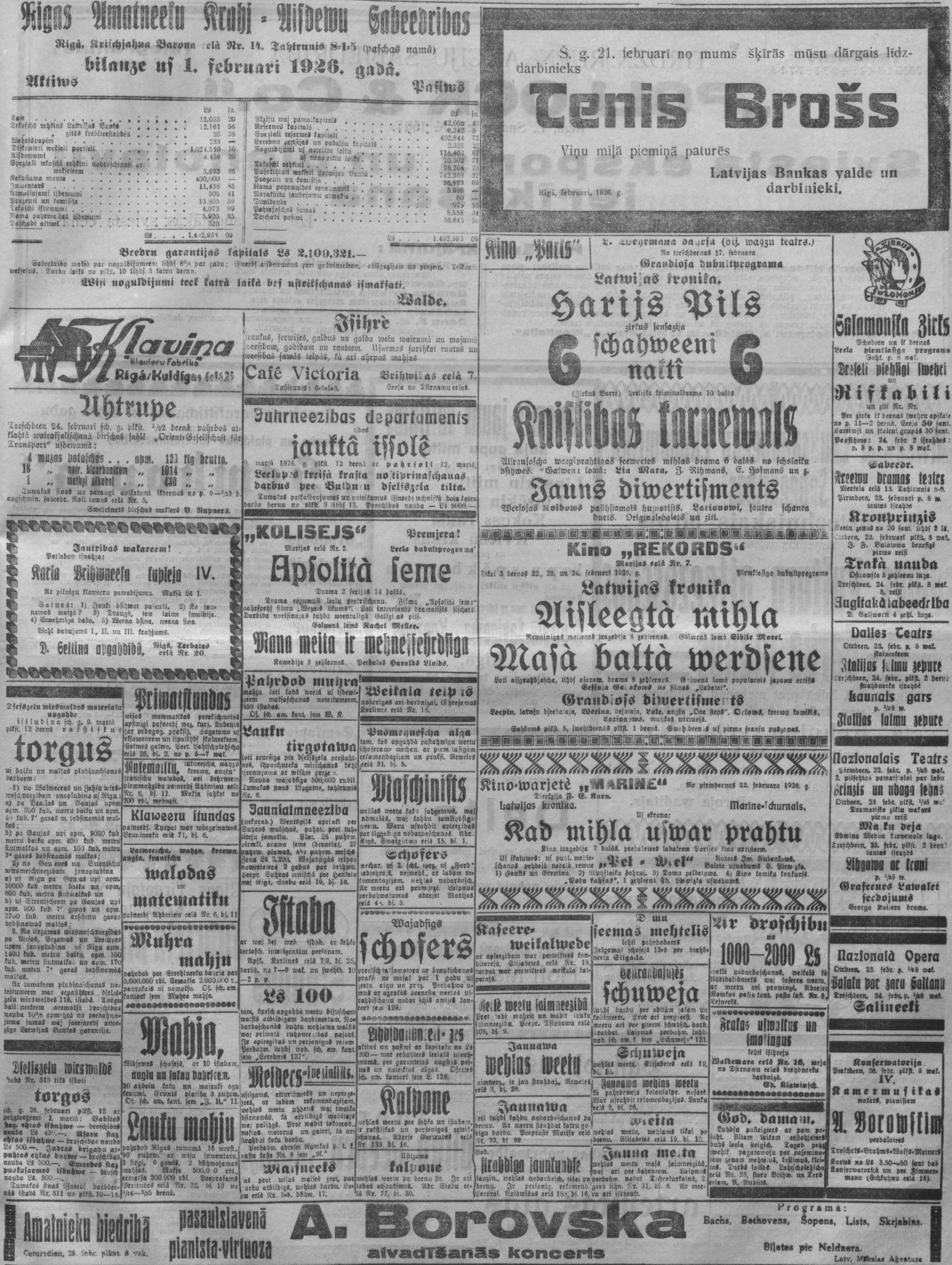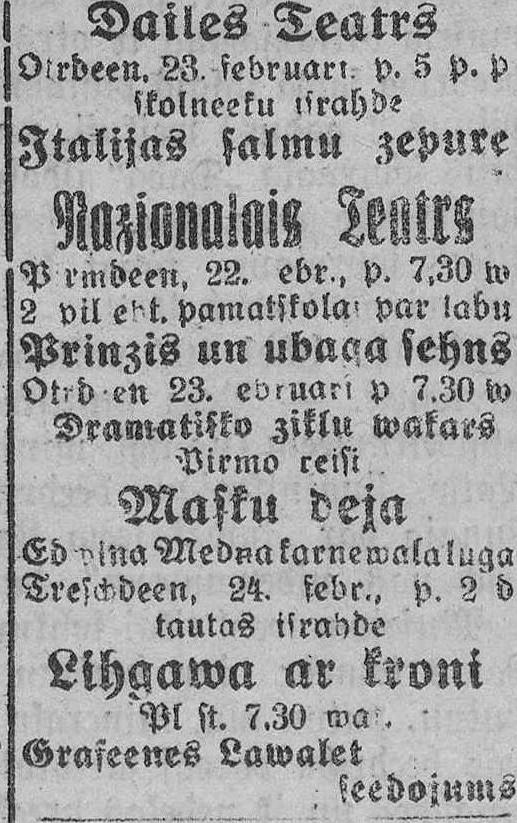 Pirmdien, 1926. gada 22. februāris
