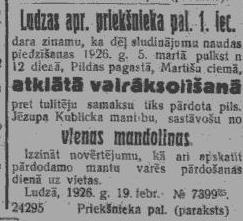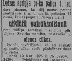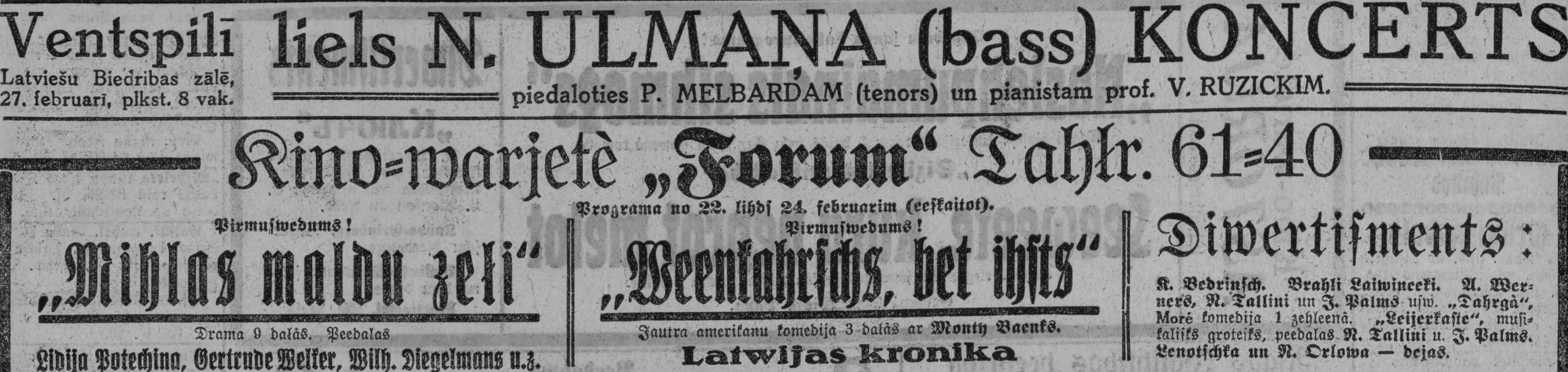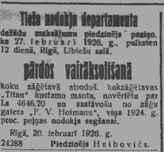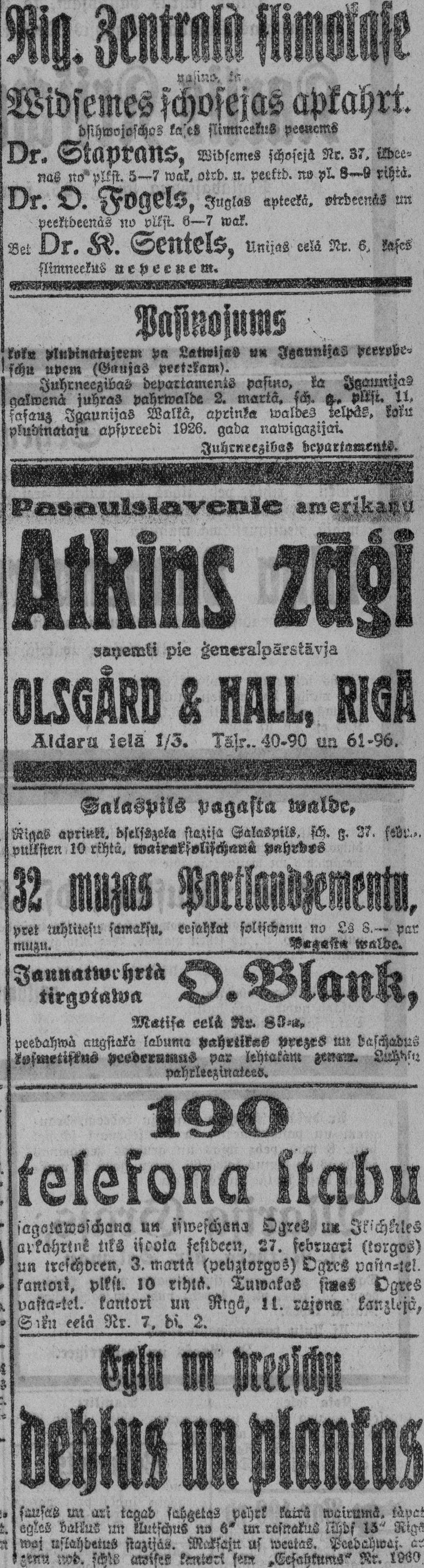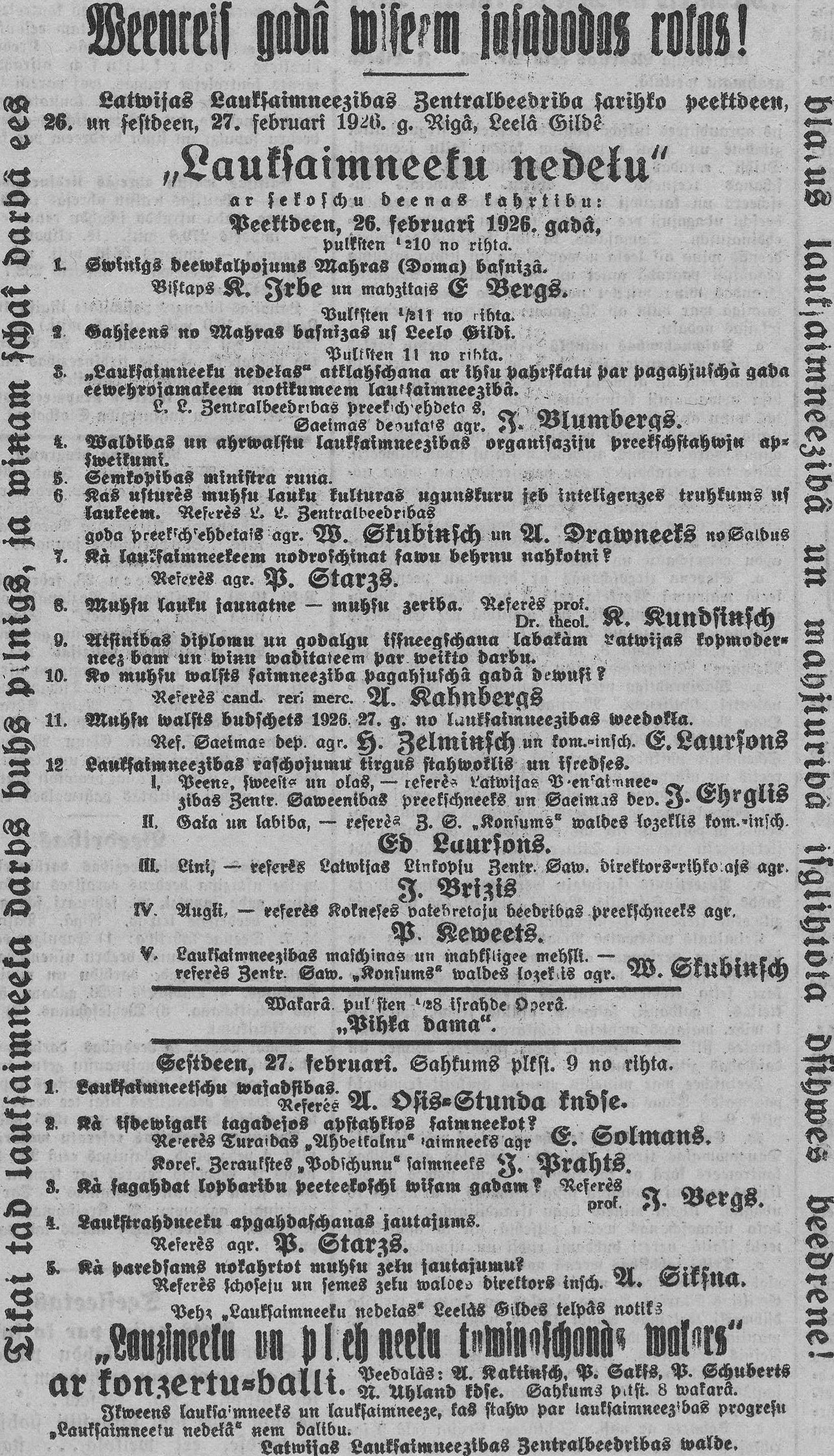 Pirmdien, 1926. gada 22. februāris