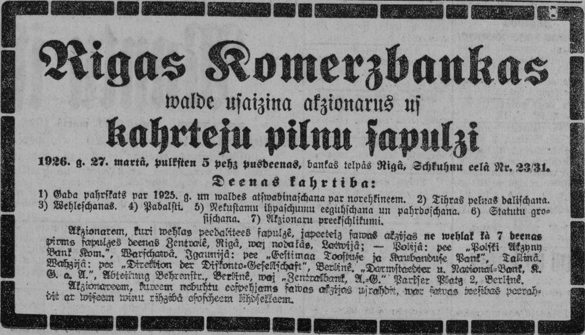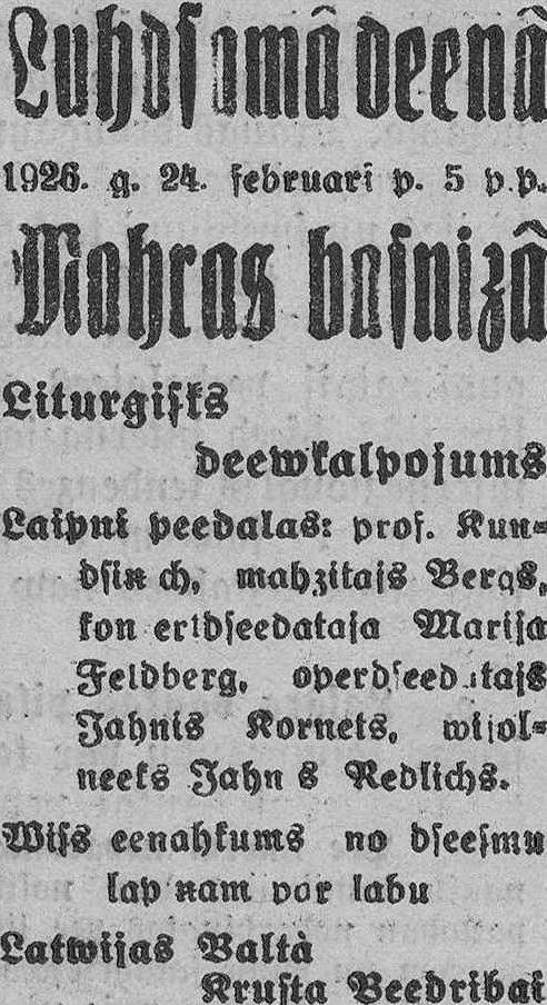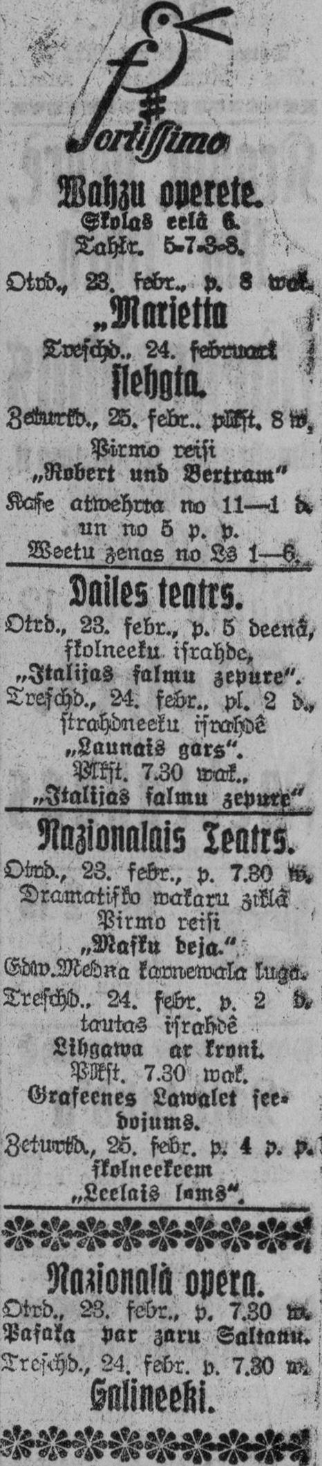 Otrdien, 1926. gada 23. februāris