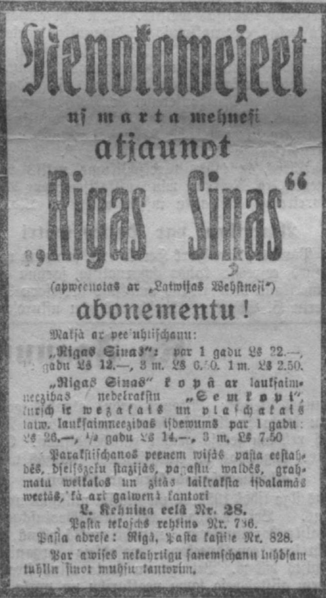 Rīgas Ziņas apvienotas ar Latvijas Vēstnesi, №43