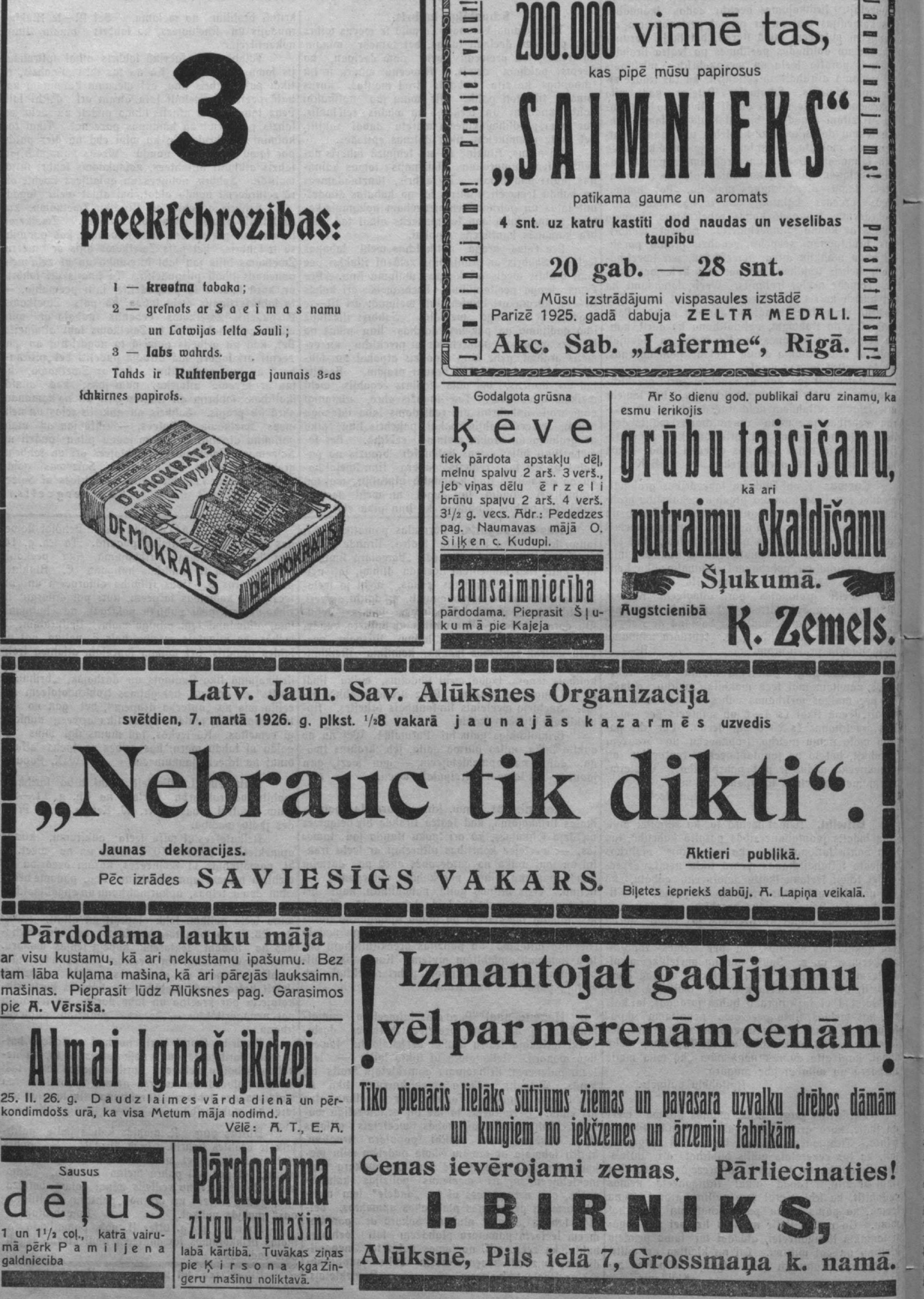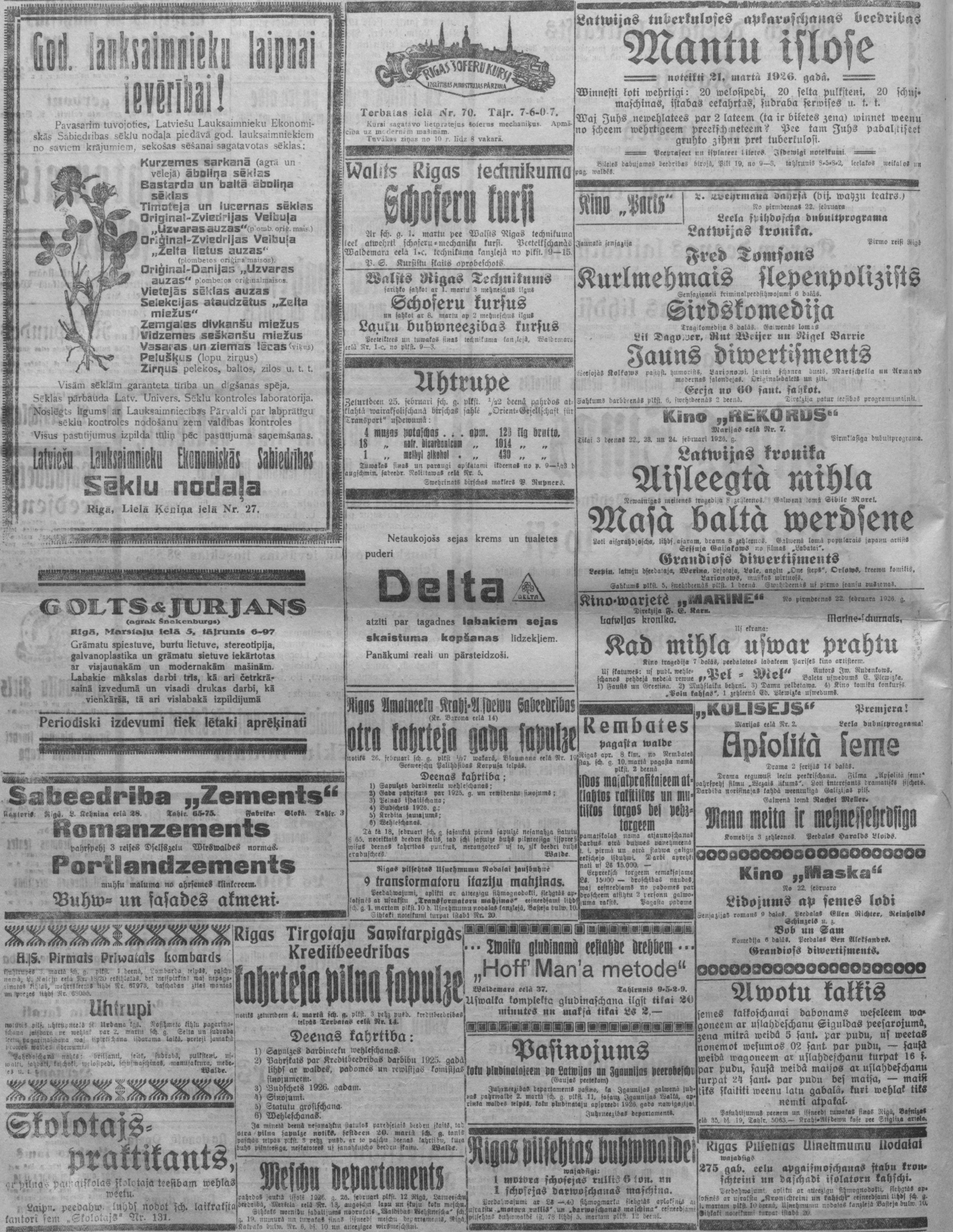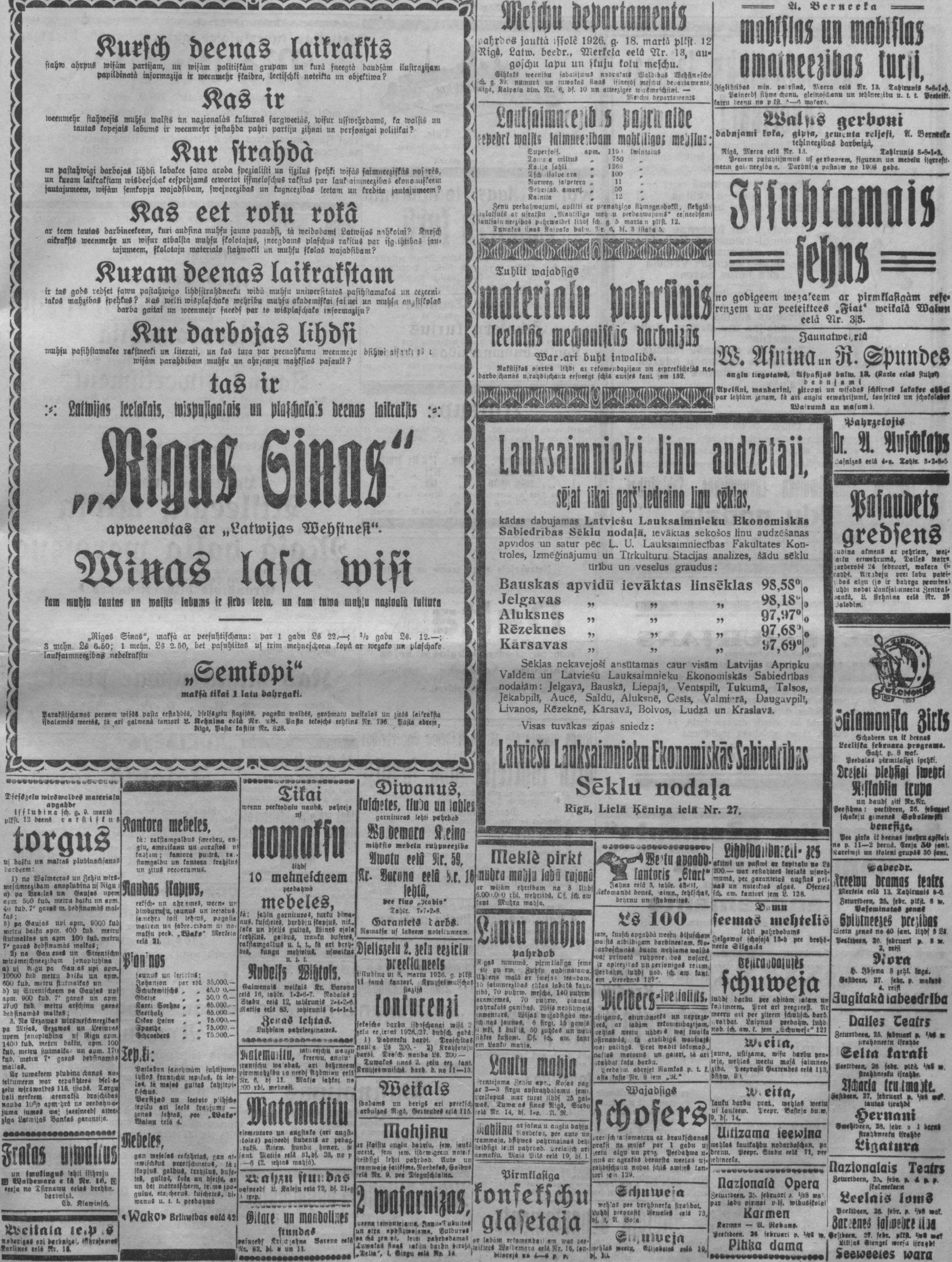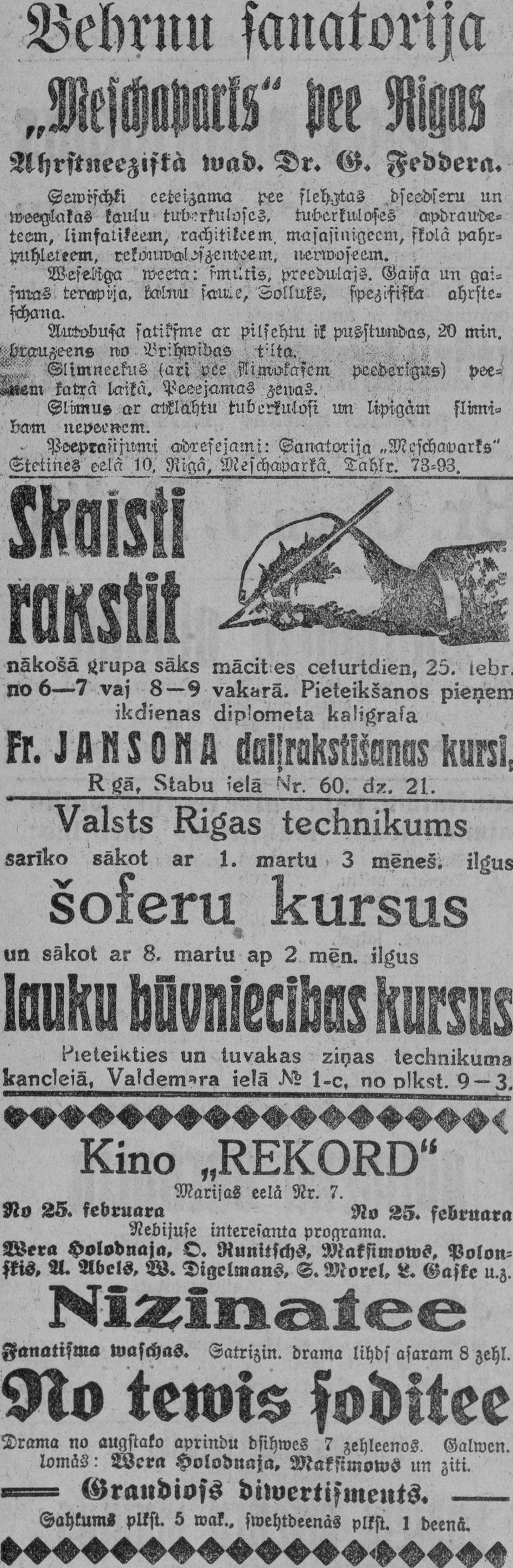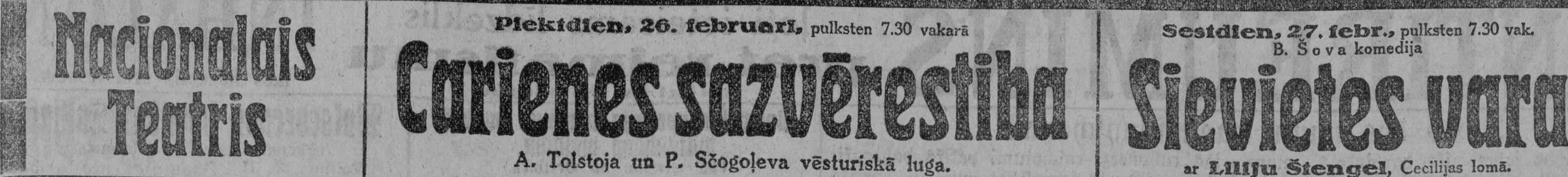 Ceturtdien, 1926. gada 25. februāris