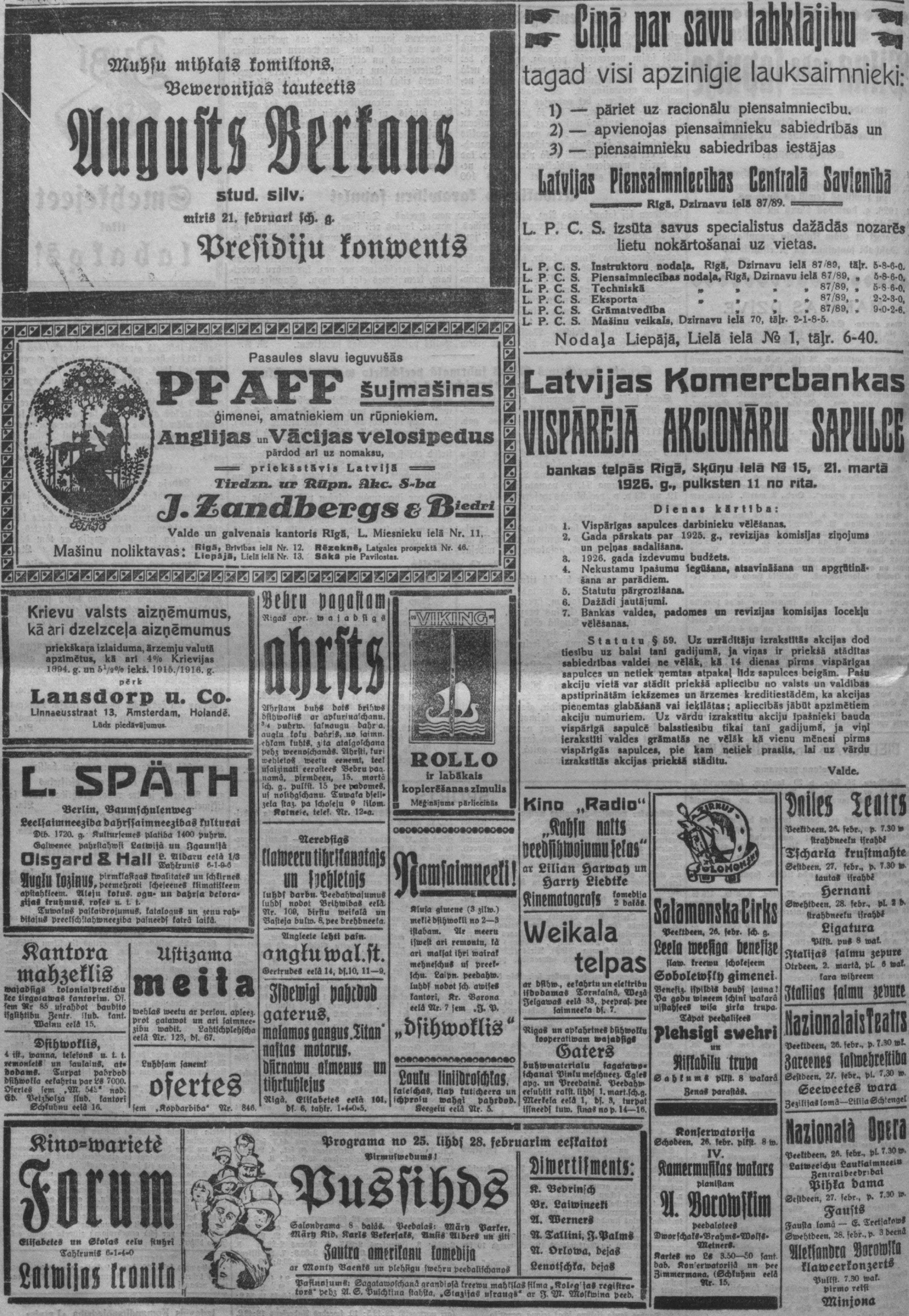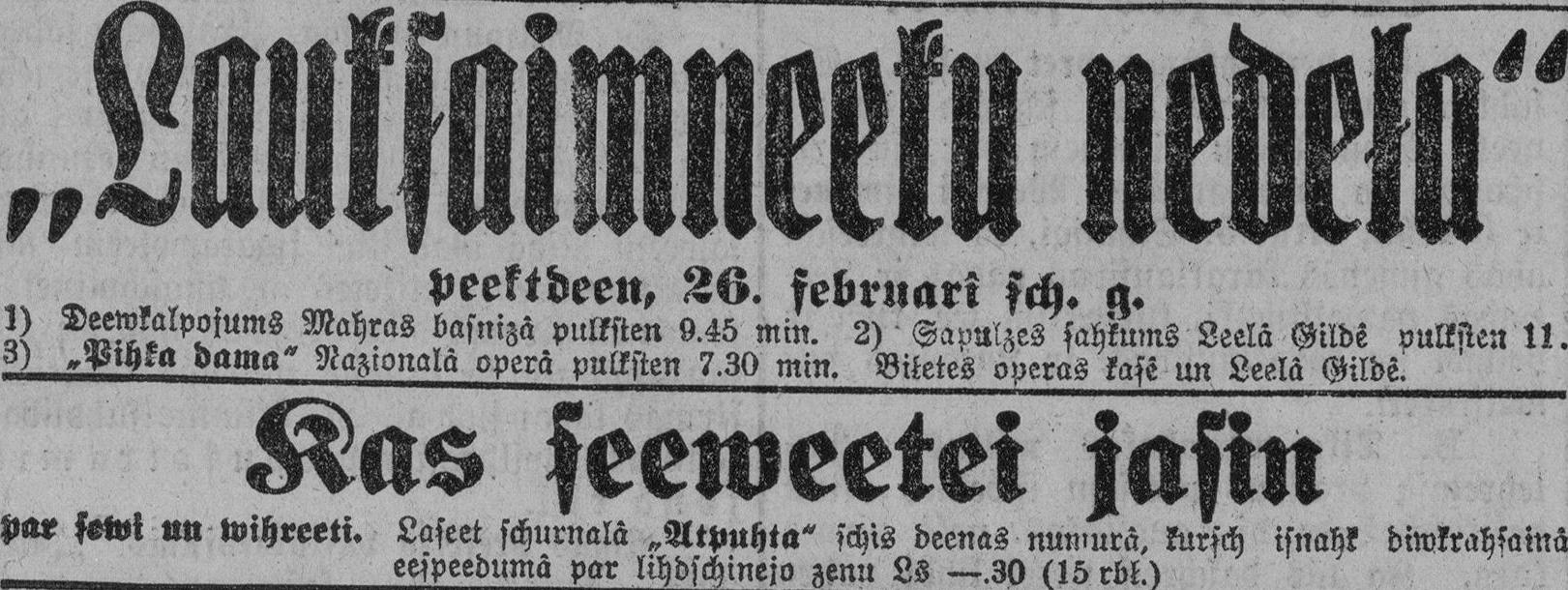 Piektdien, 1926. gada 26. februāris