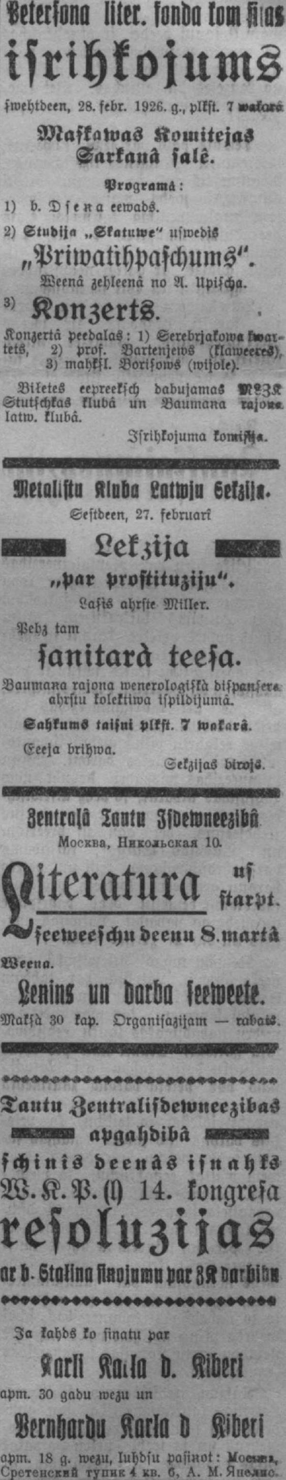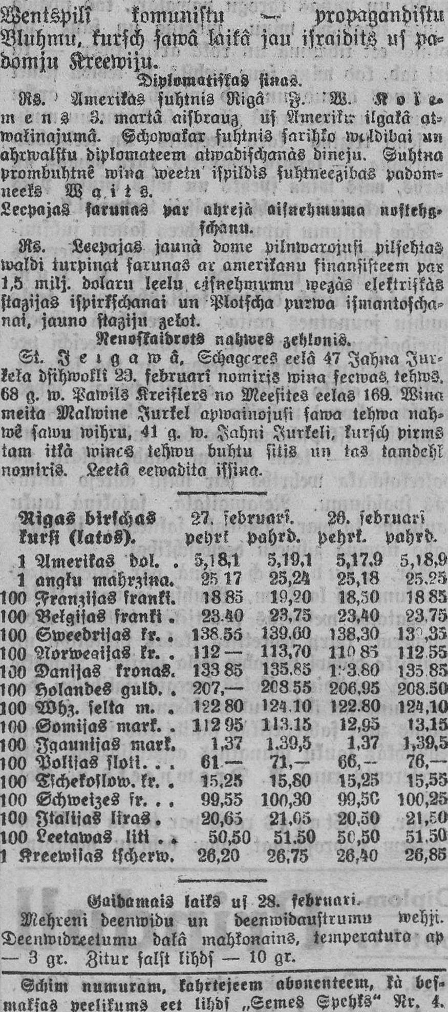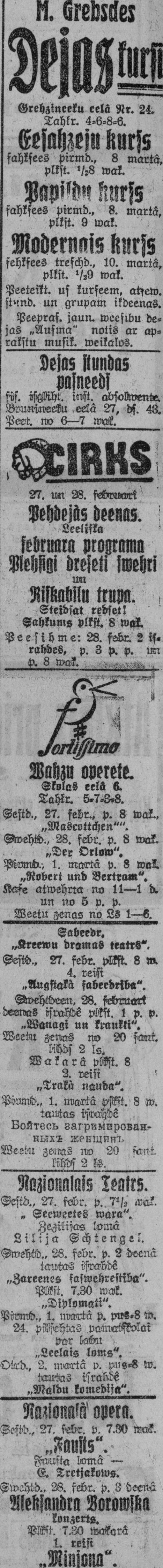 Sestdien, 1926. gada 27. februāris