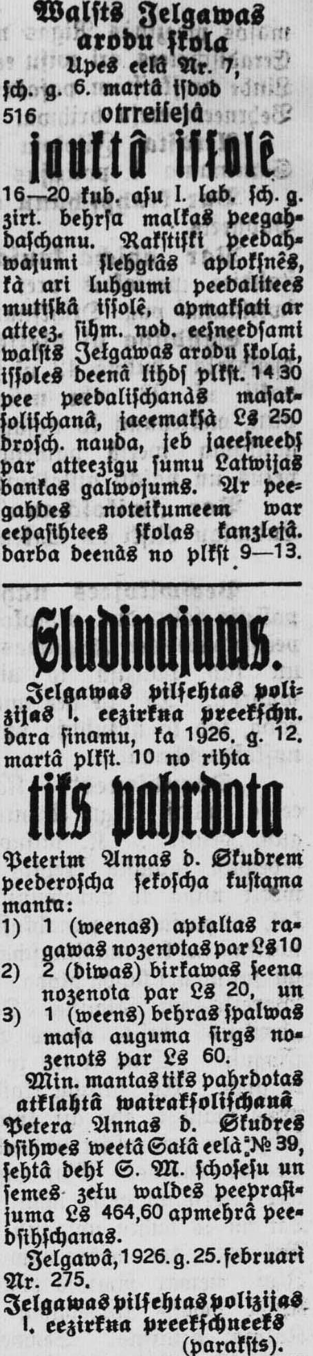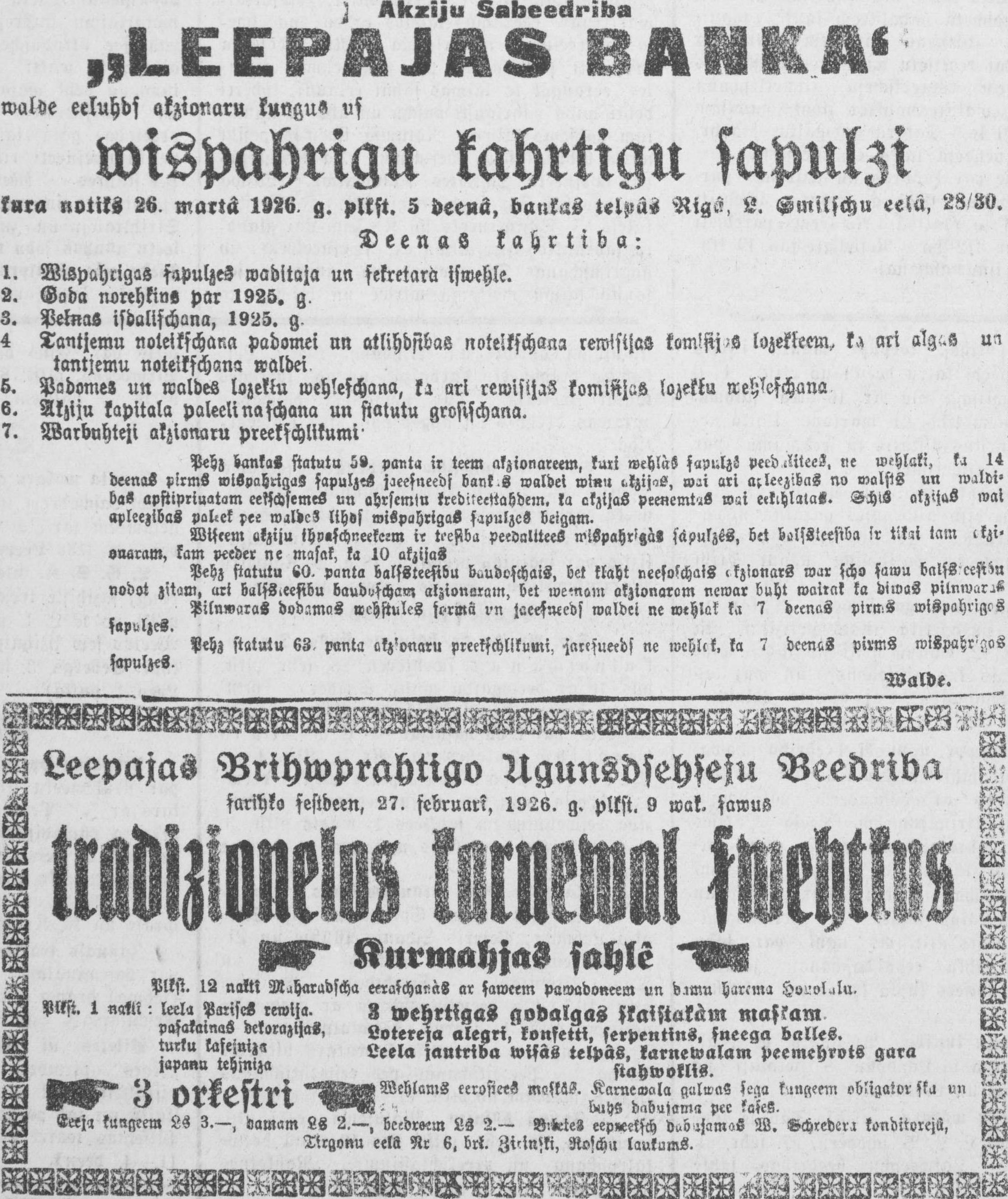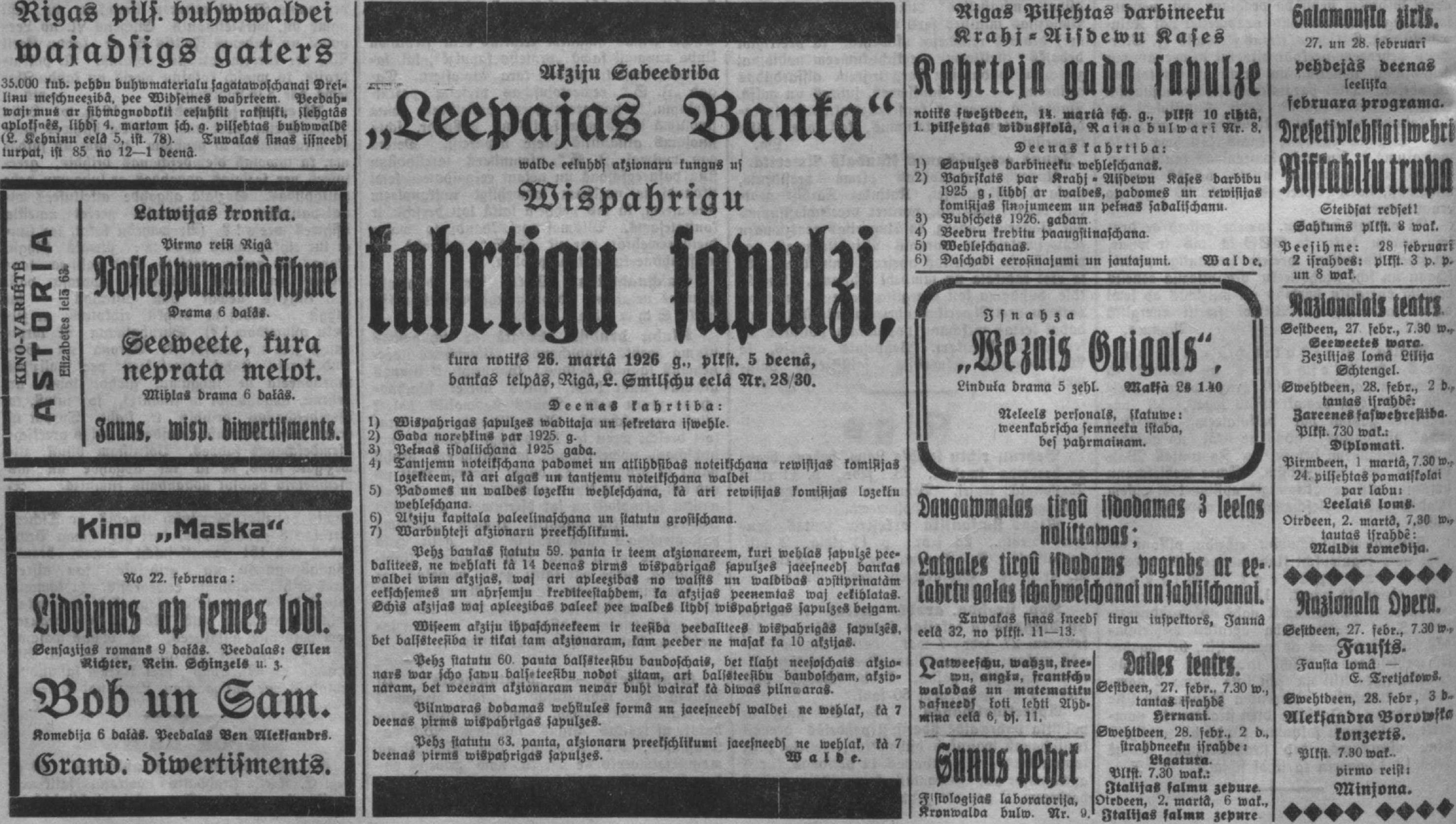 Sestdien, 1926. gada 27. februāris