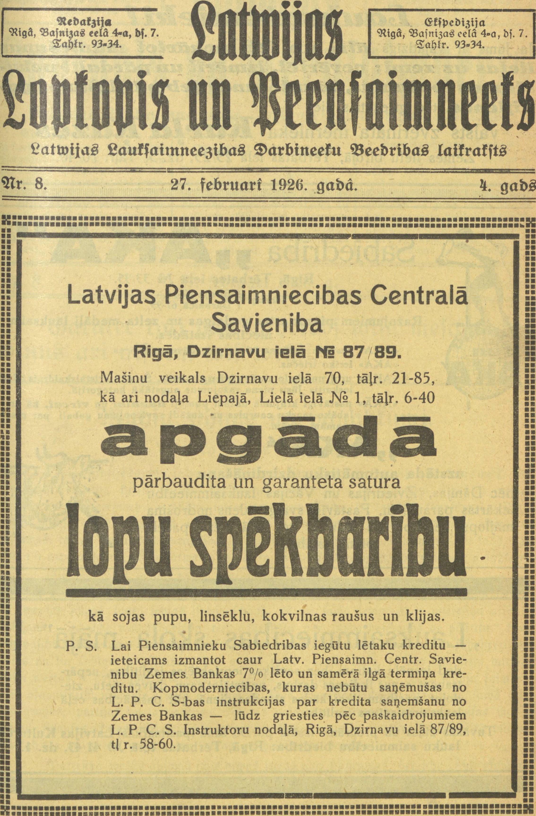 Latvijas Lopkopis un Piensaimnieks, №8