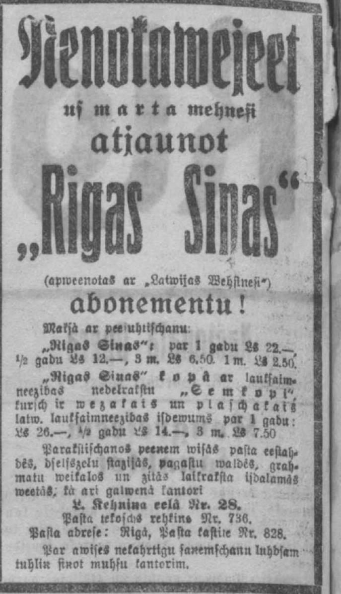 Rīgas Ziņas apvienotas ar Latvijas Vēstnesi, №46