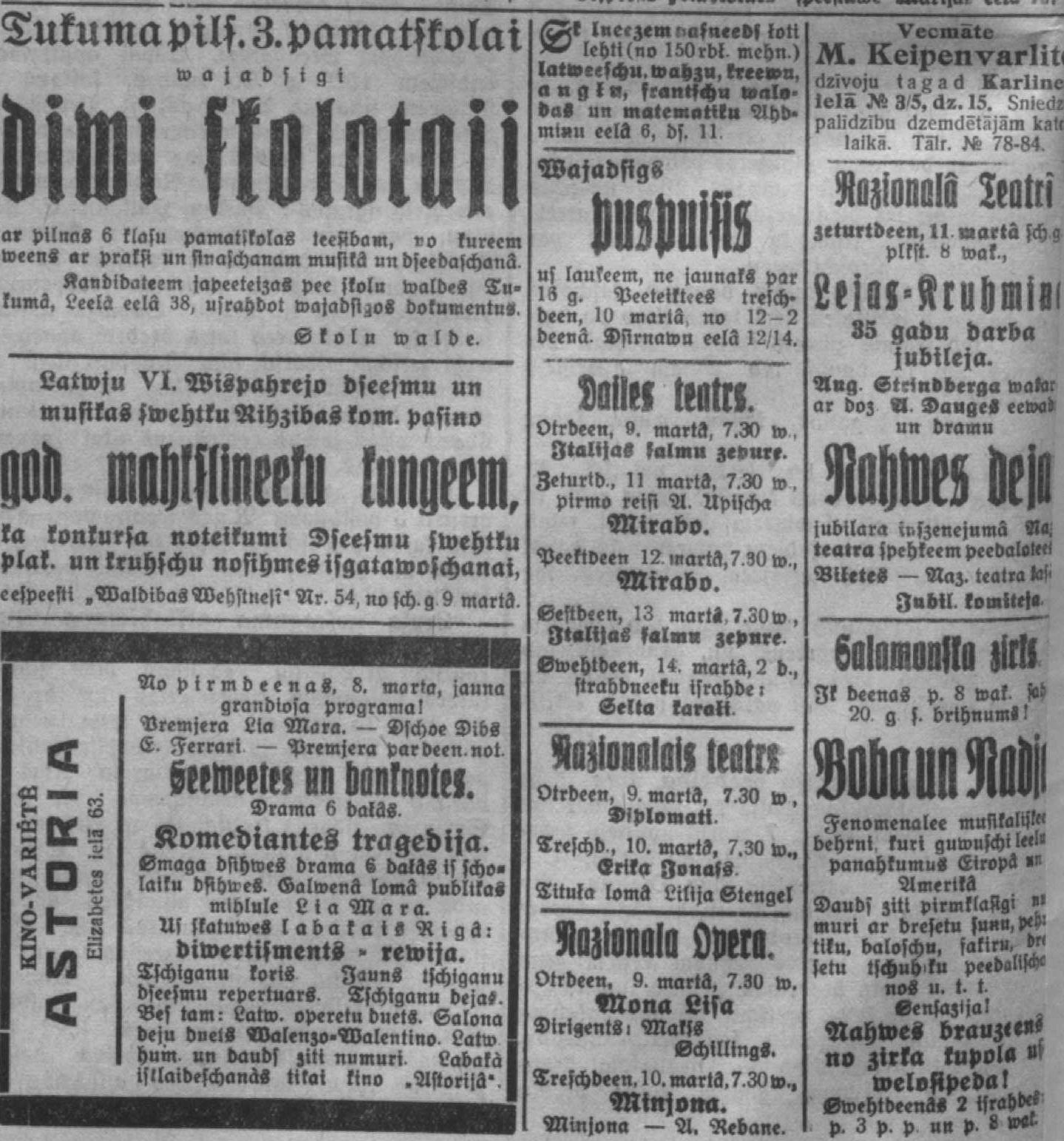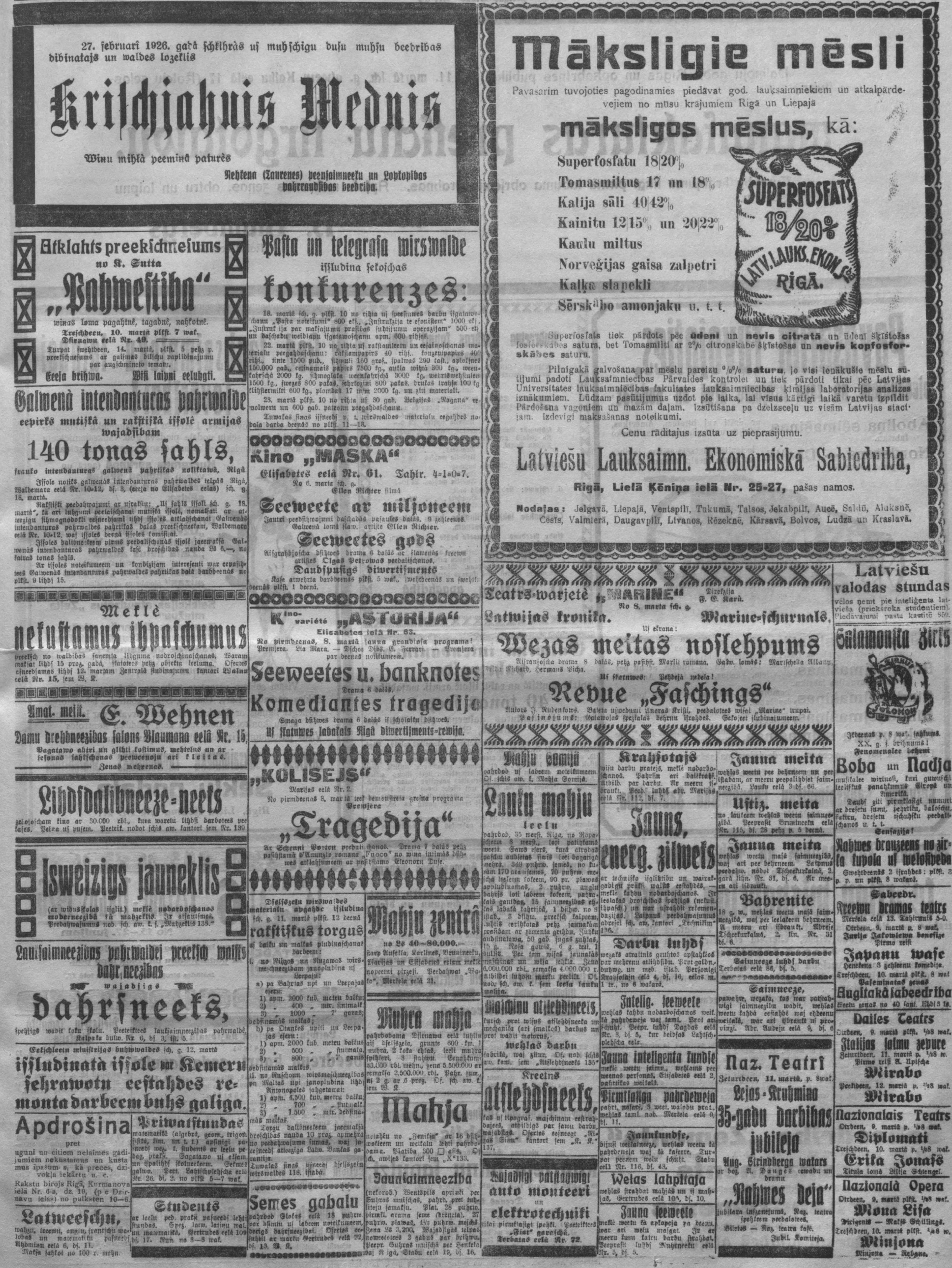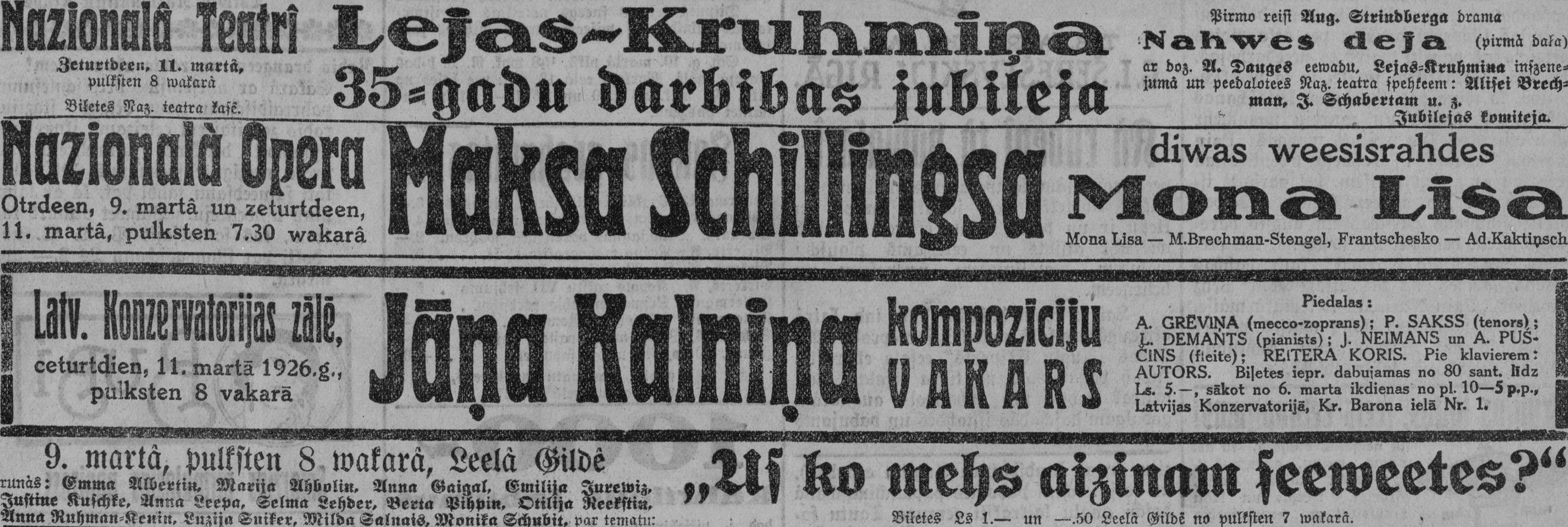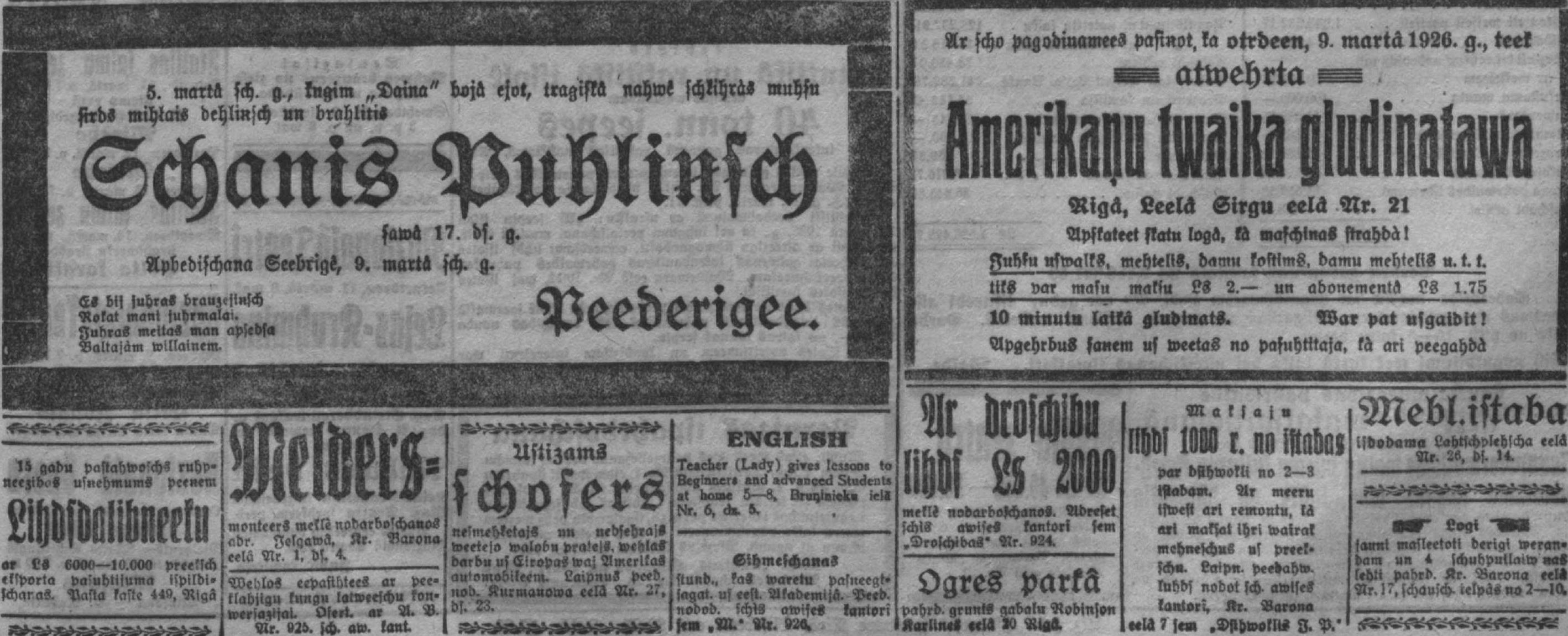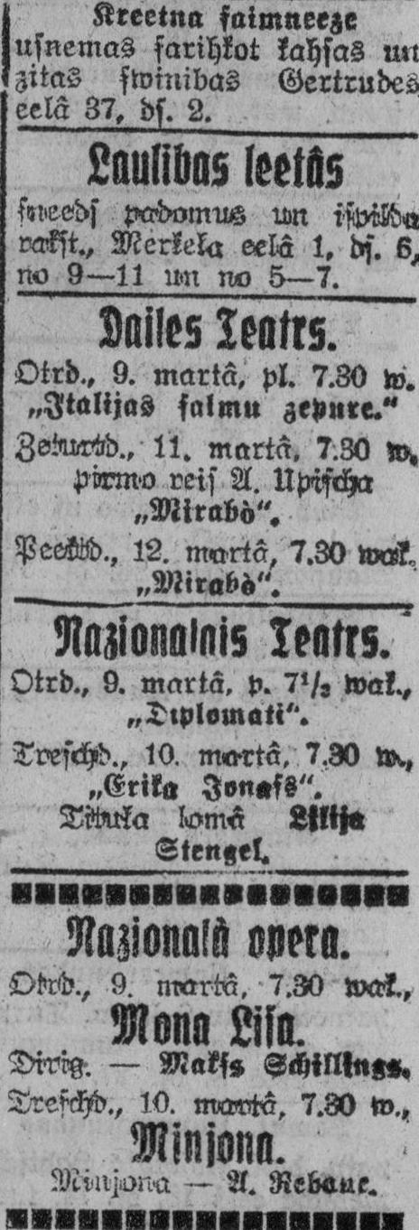 Otrdien, 1926. gada 9. marts