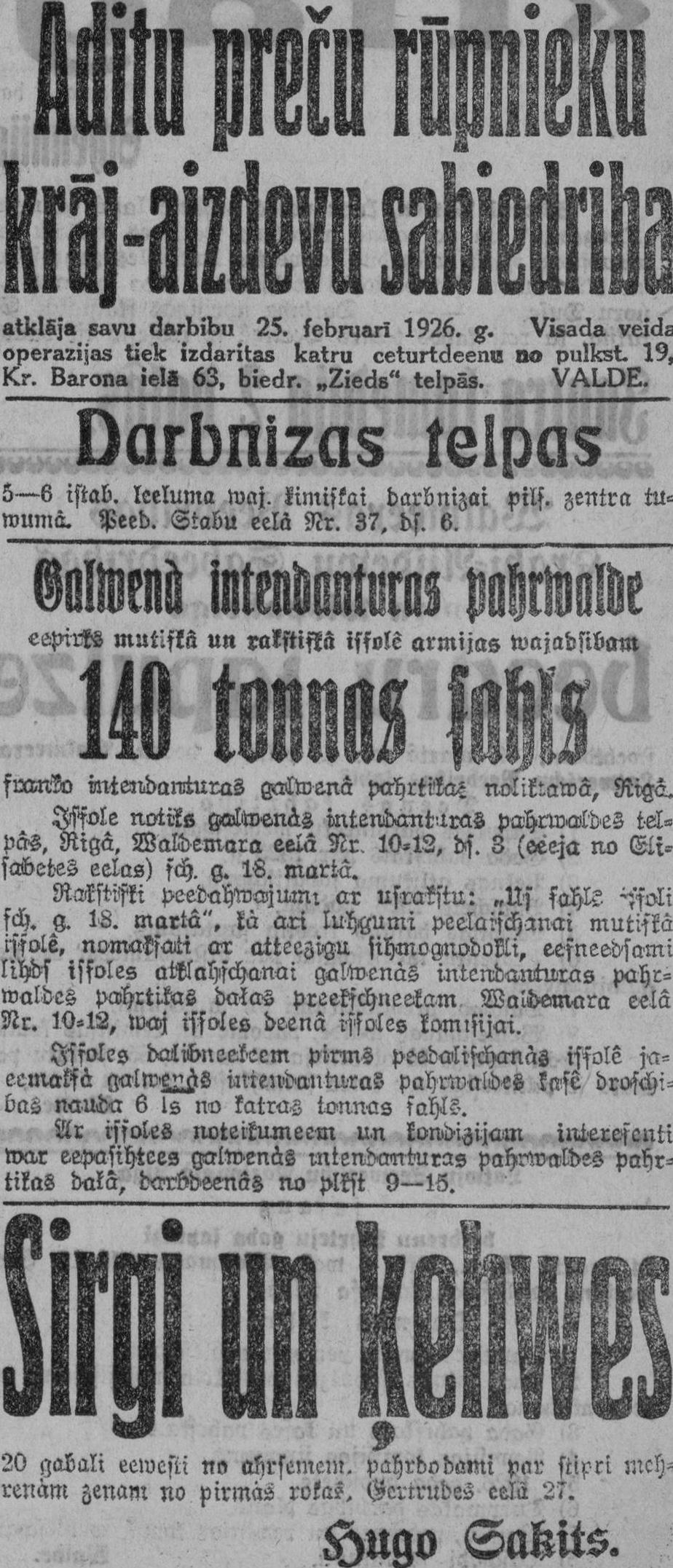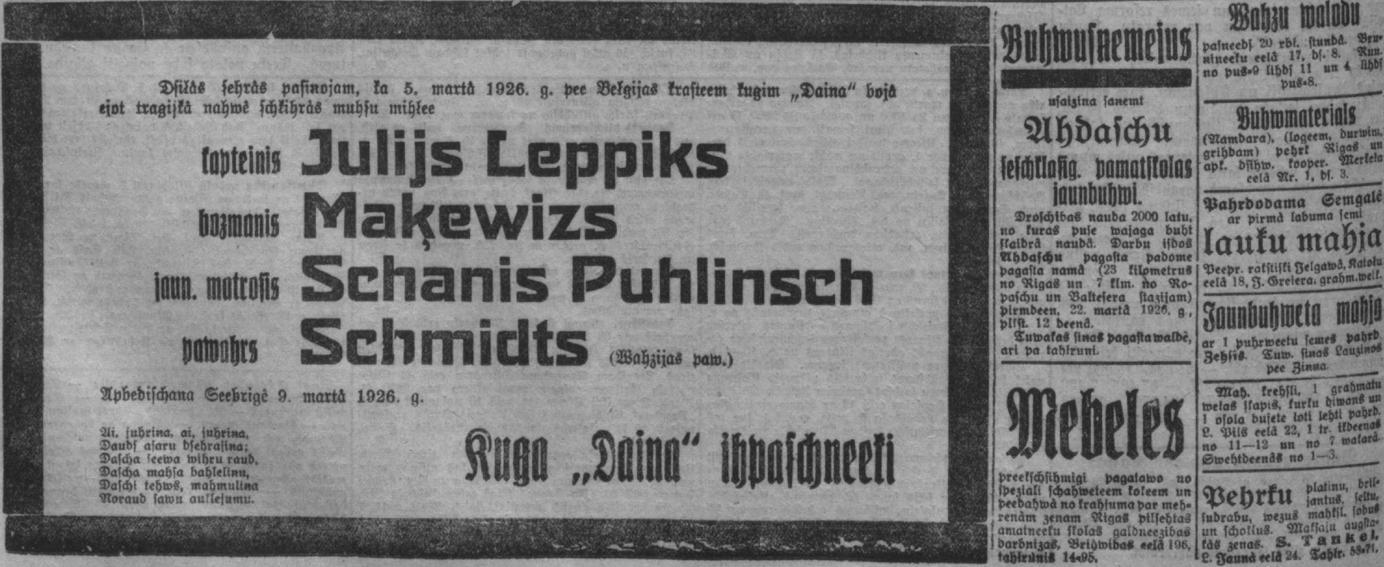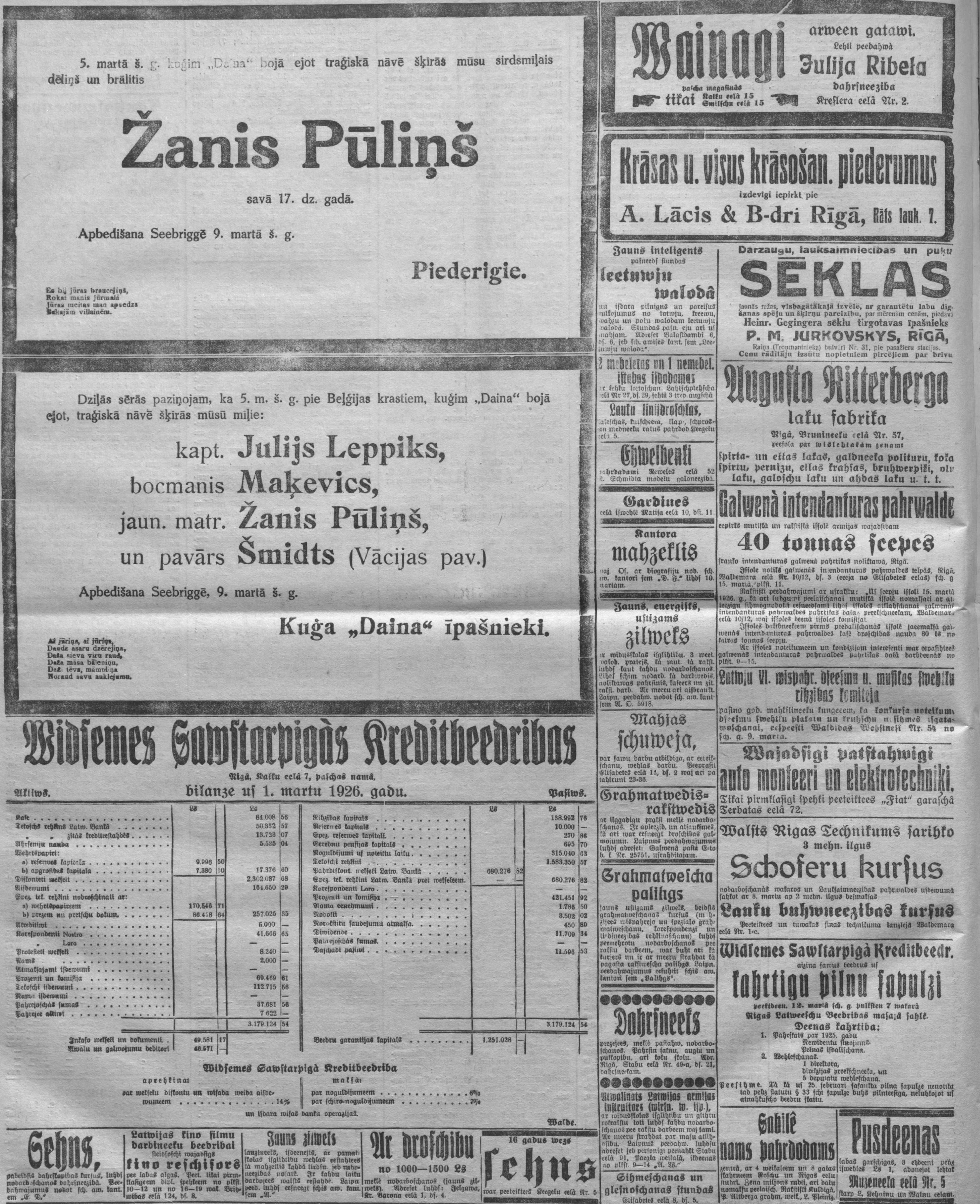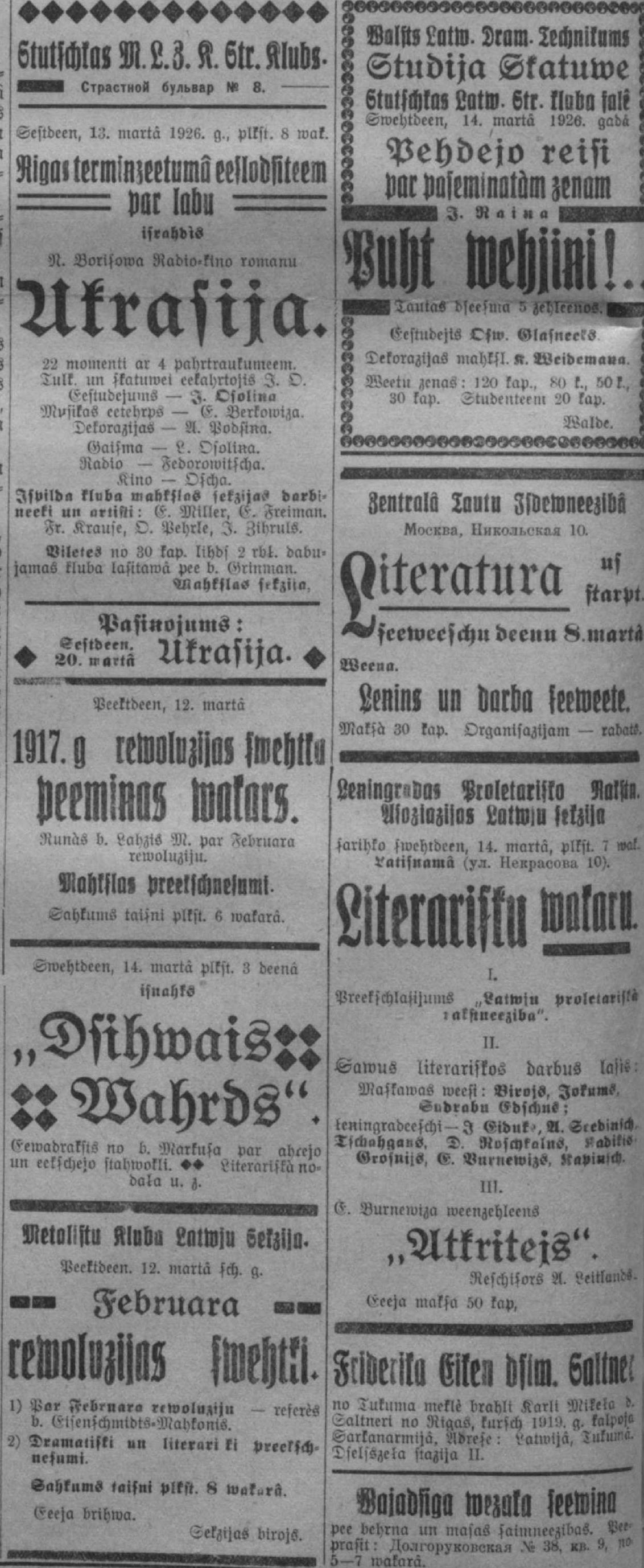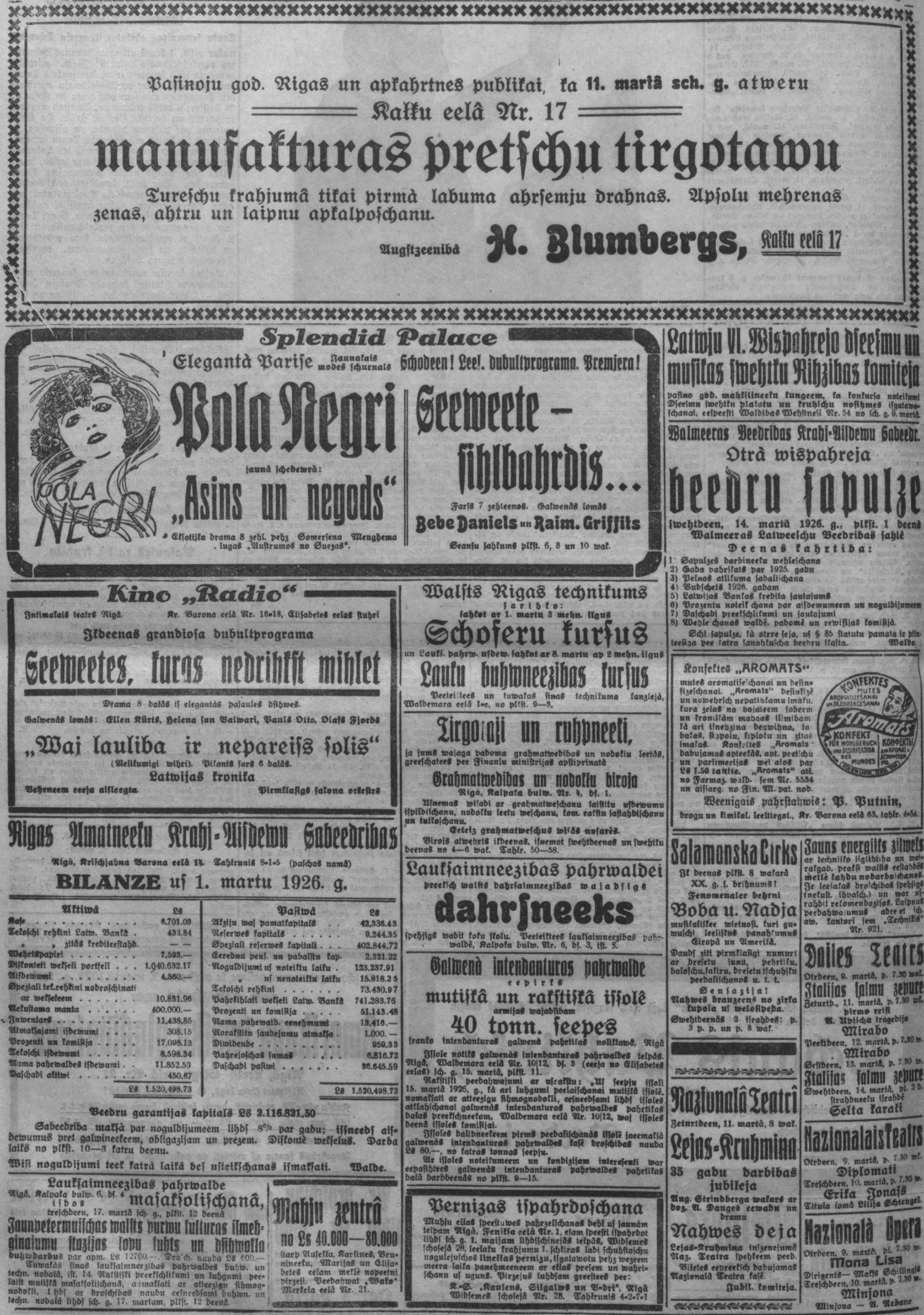 Otrdien, 1926. gada 9. marts
