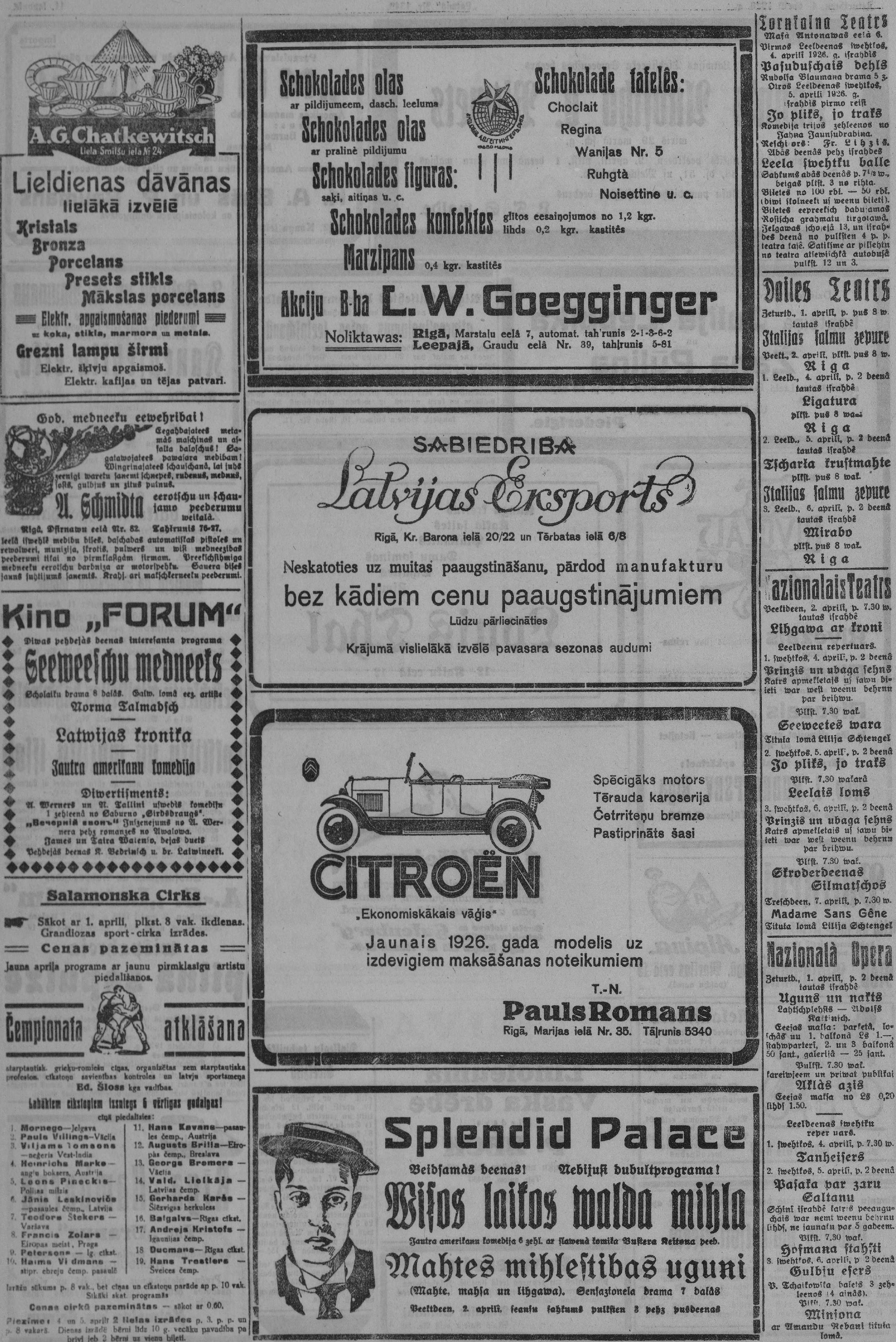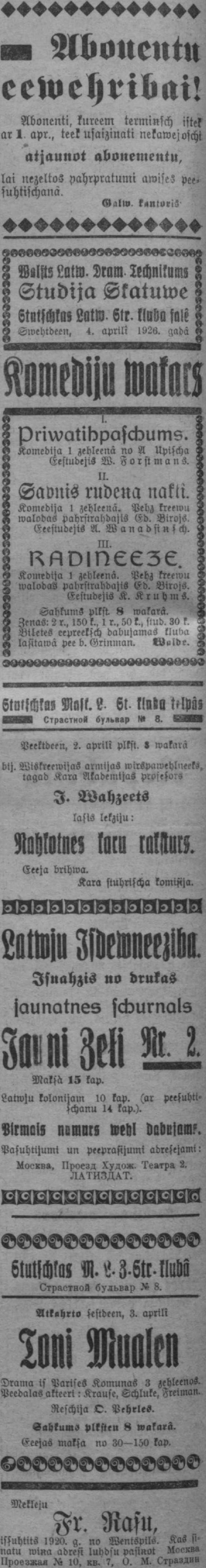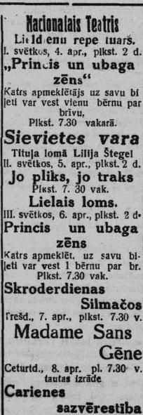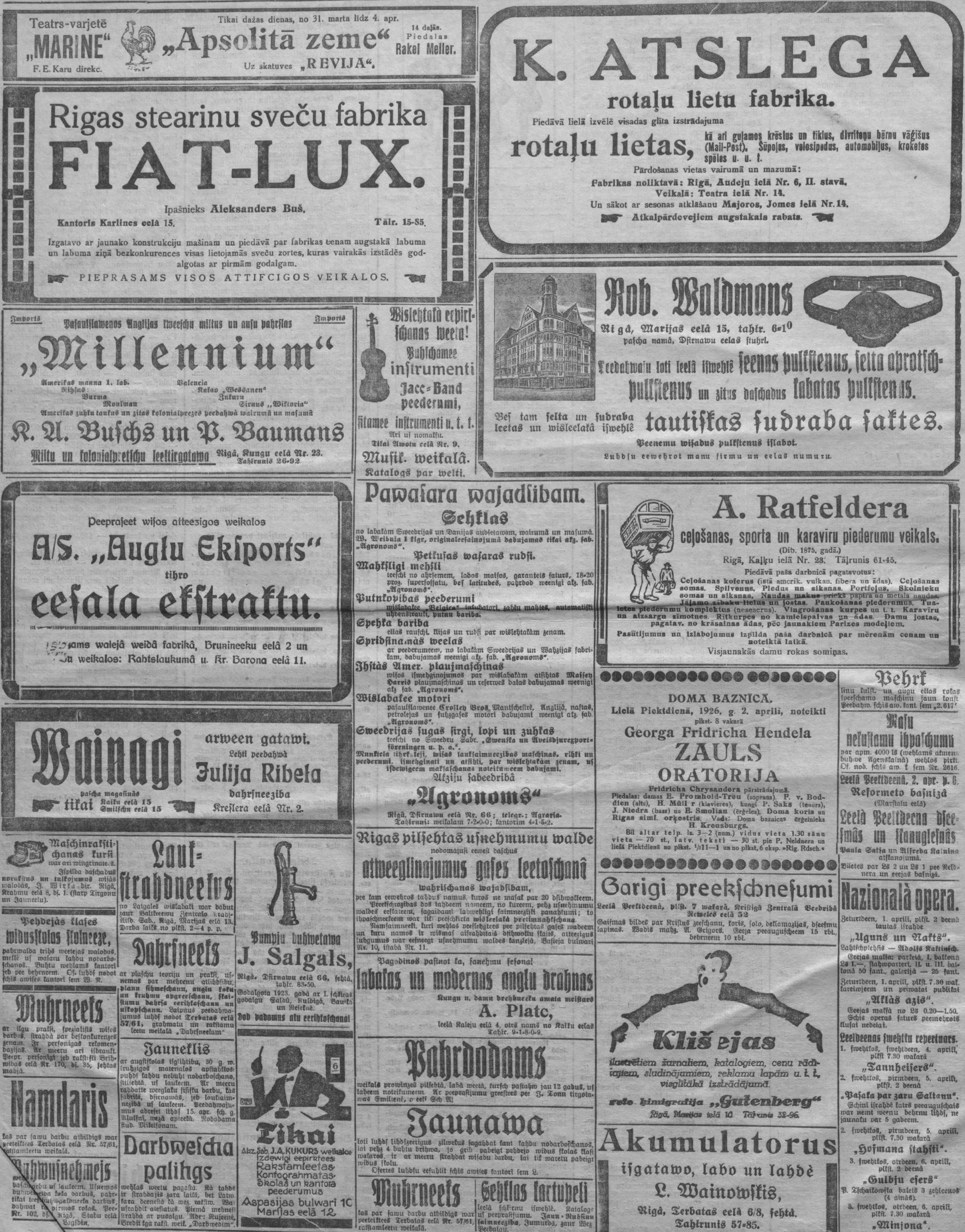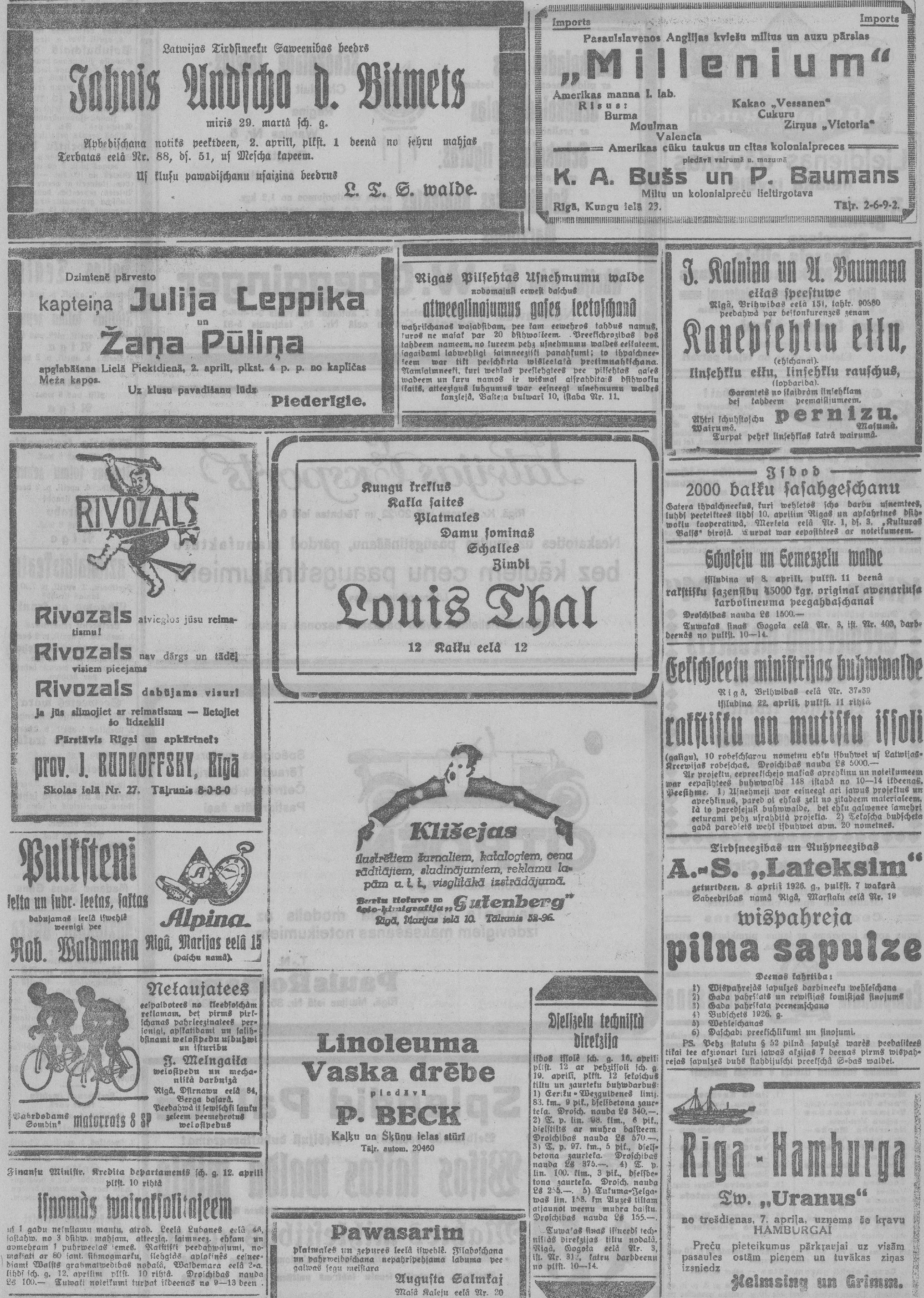 Ceturtdien, 1926. gada 1. aprīlis