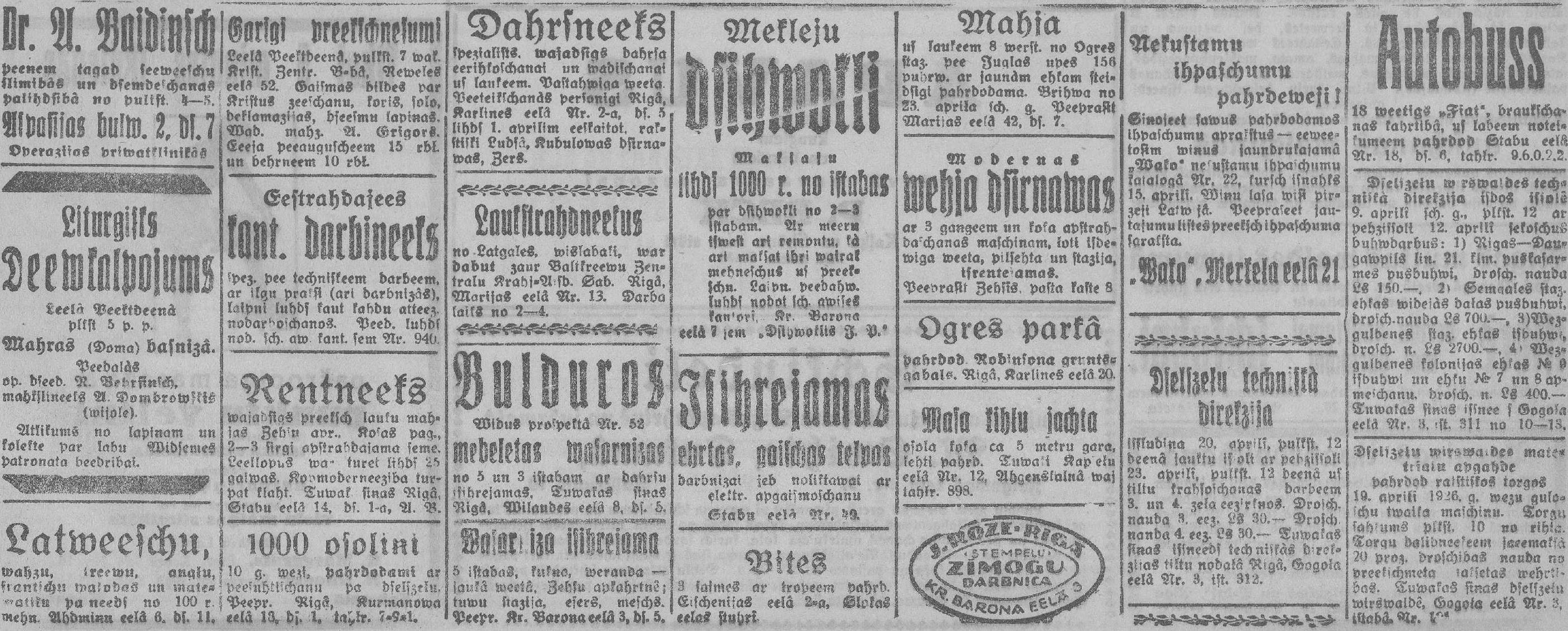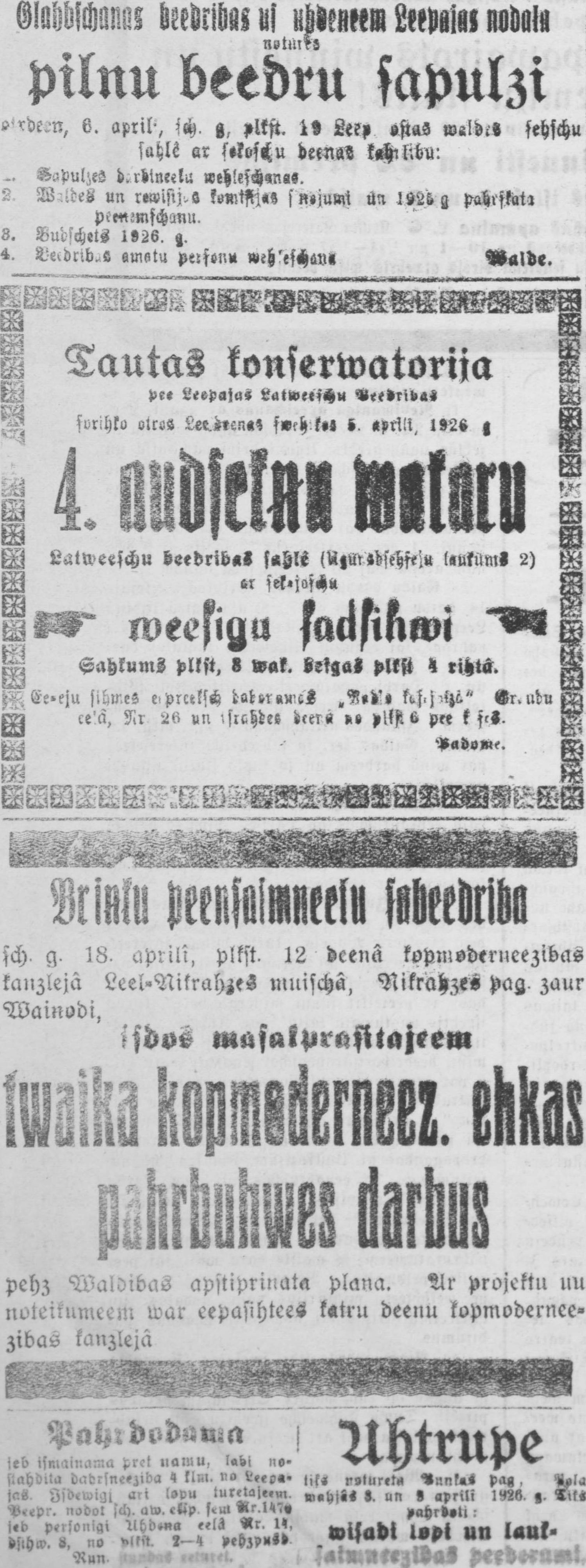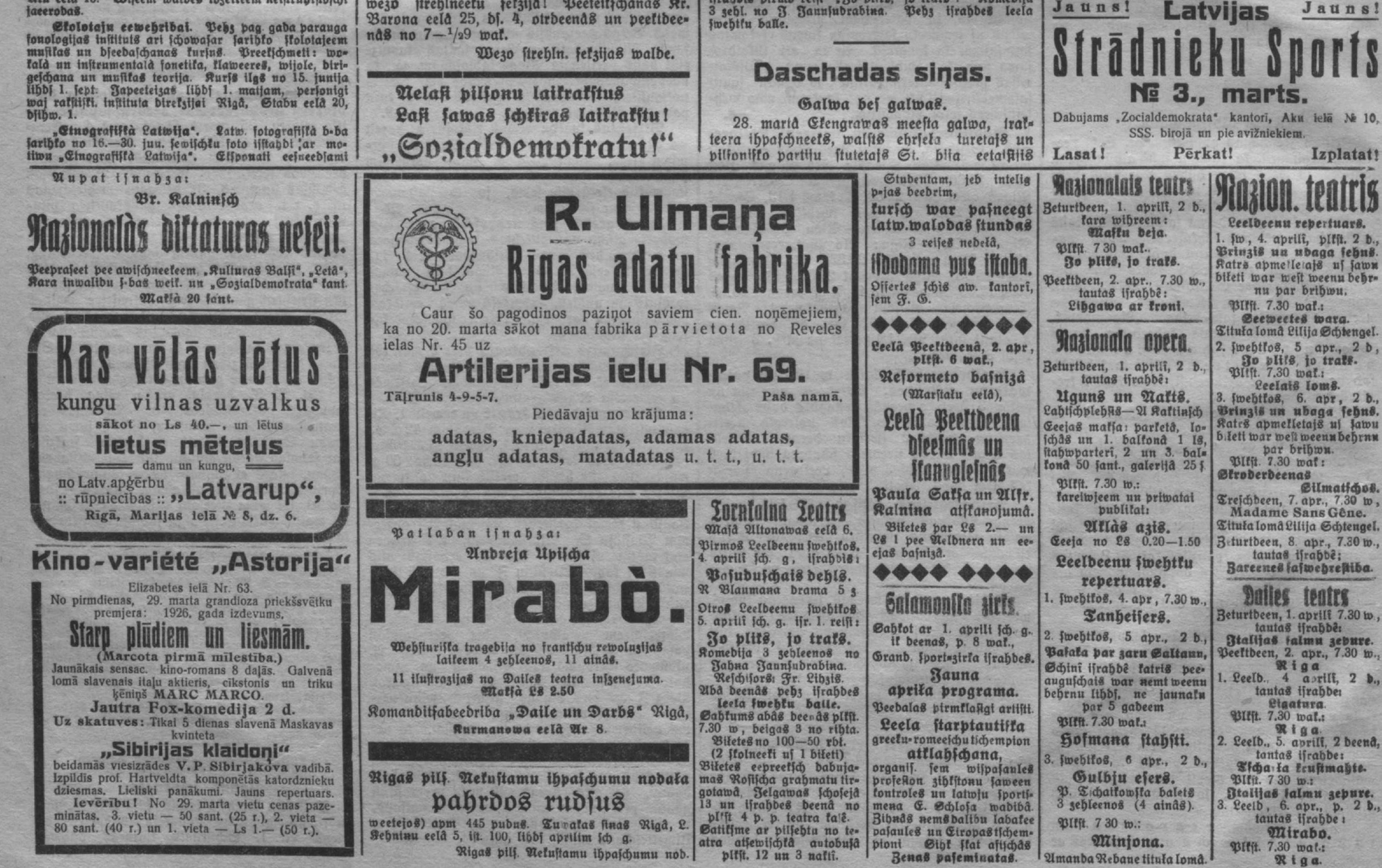 Ceturtdien, 1926. gada 1. aprīlis
