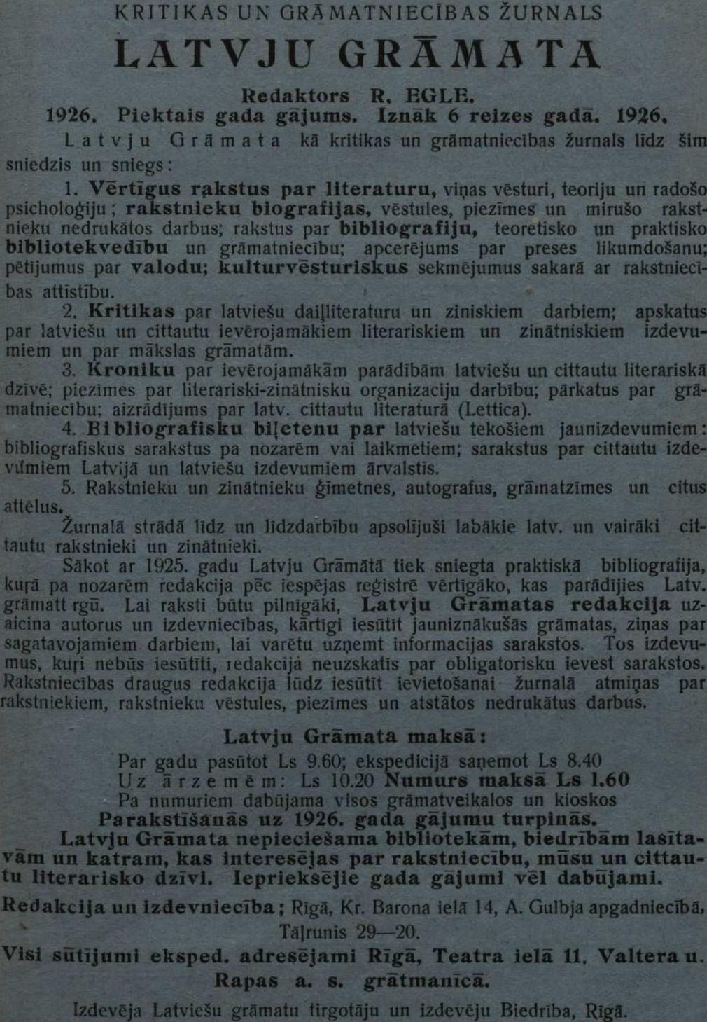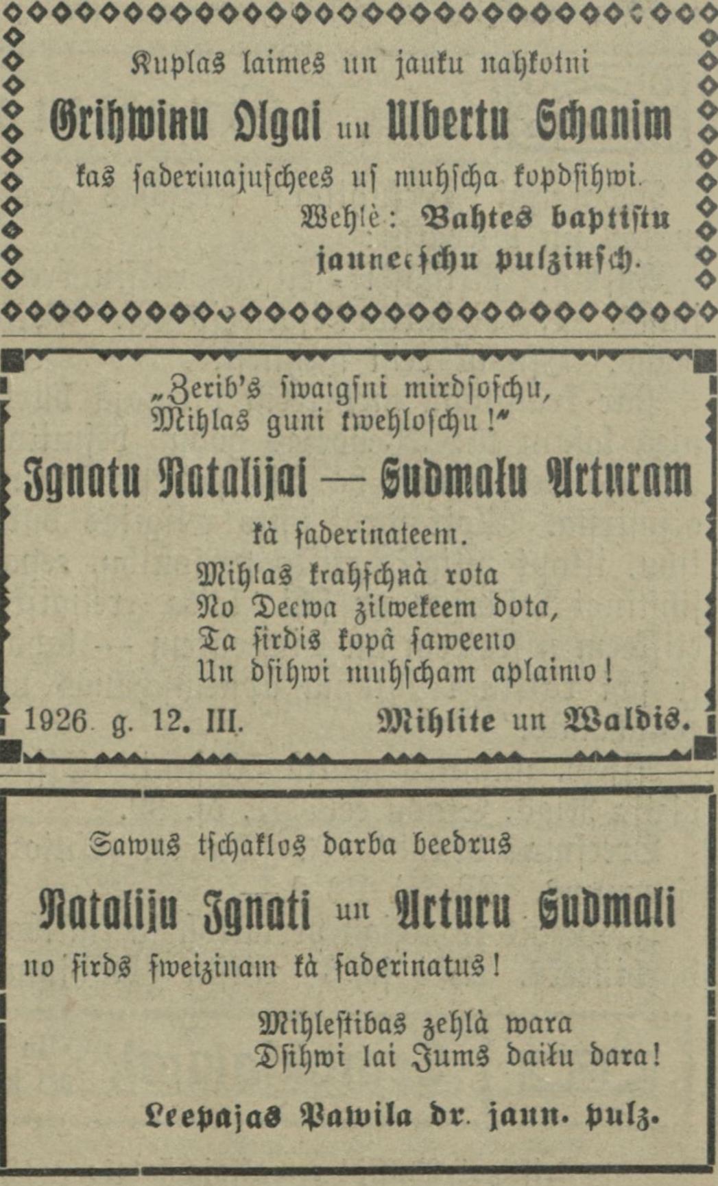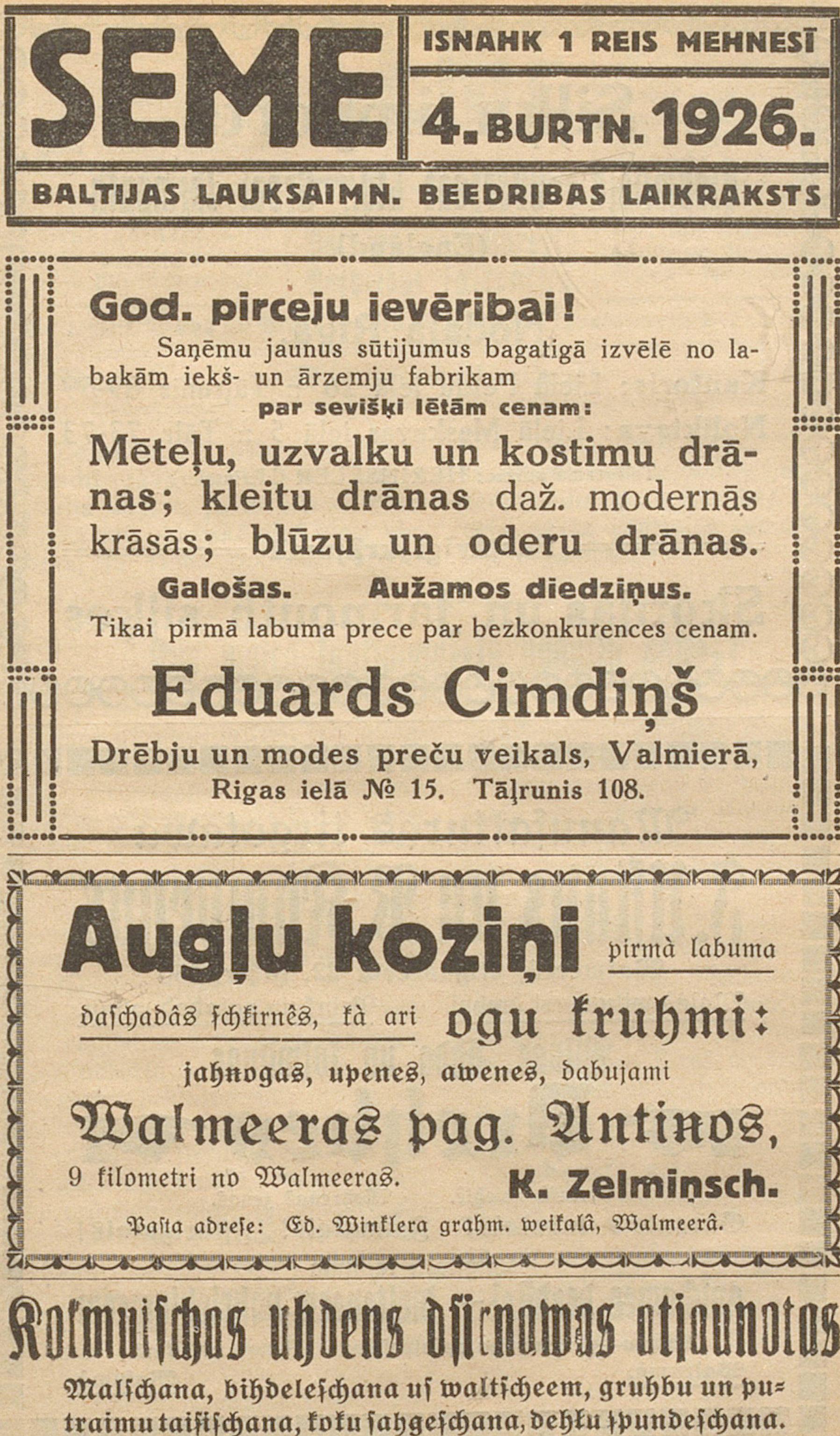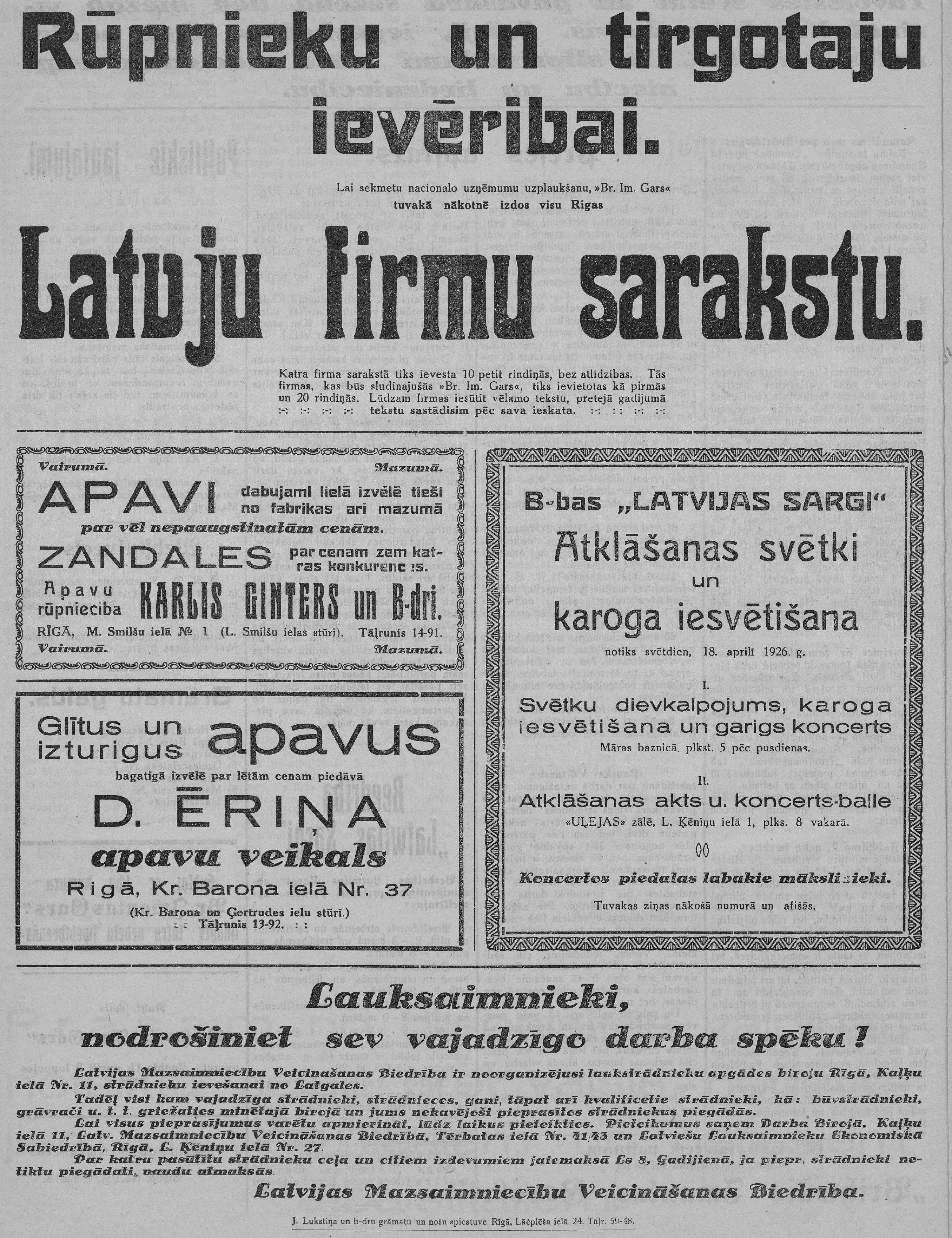 Ceturtdien, 1926. gada 1. aprīlis