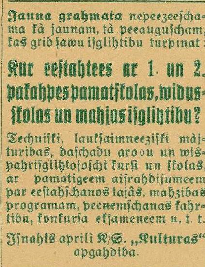 Ārpusskolas Izglītības Kongresu Padomes Biļetens Kultūrdzīves Veidošanai, №1