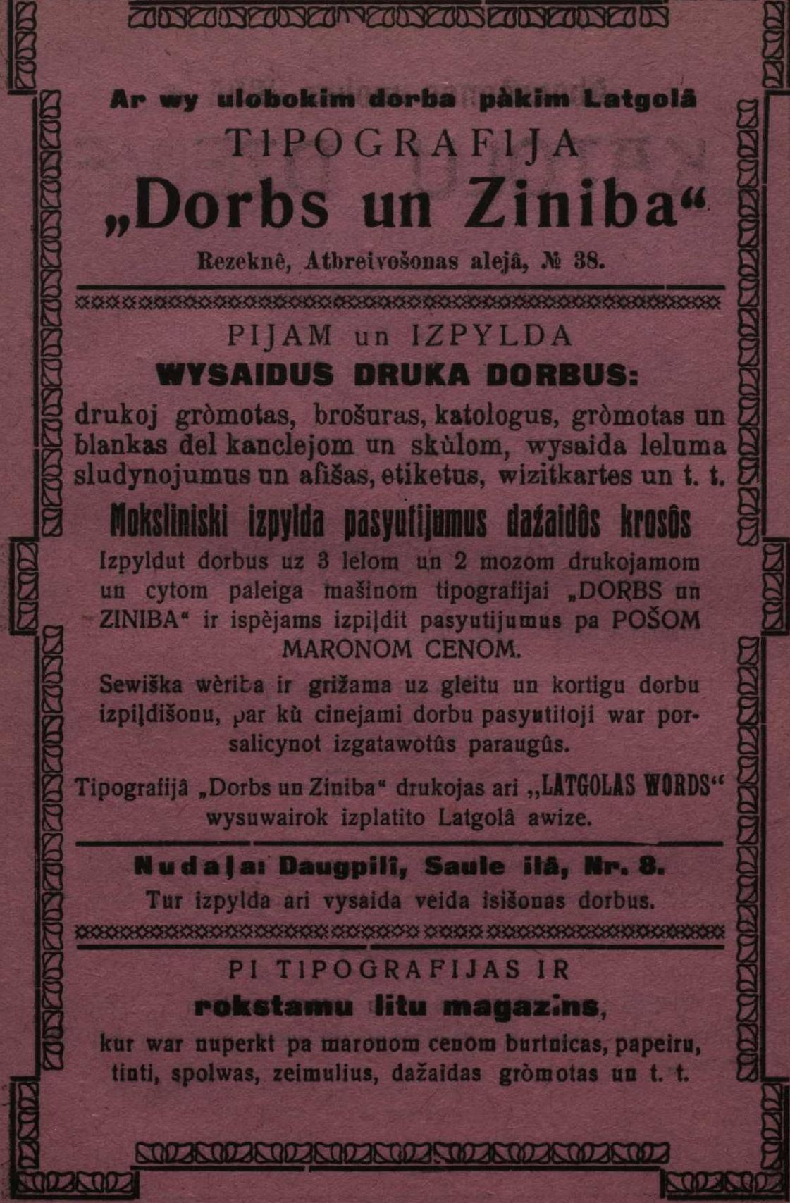 Latgolas Dorbs, №3