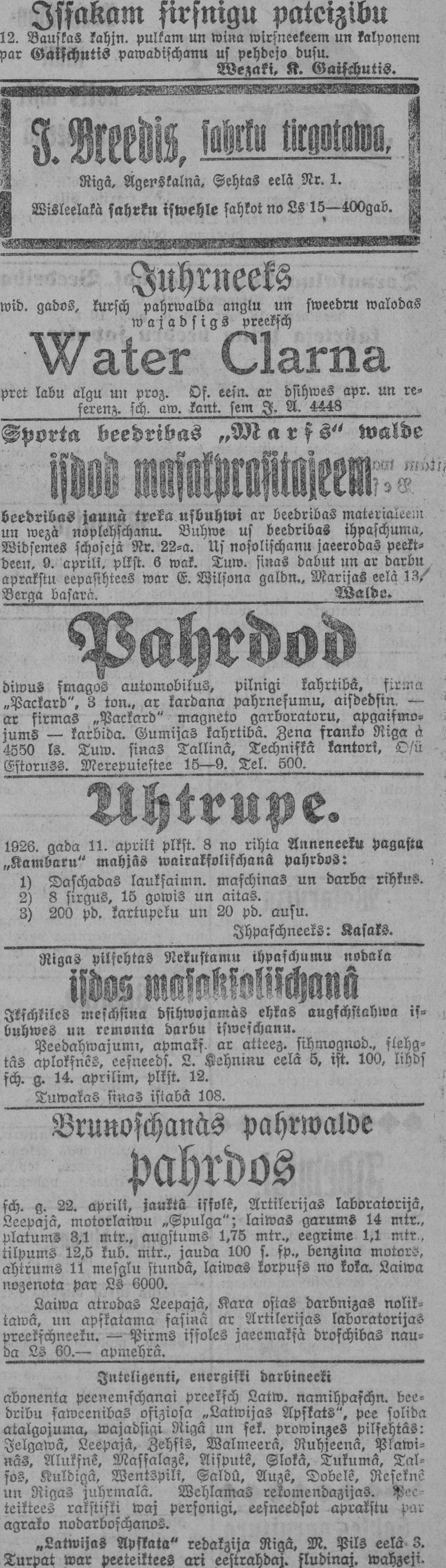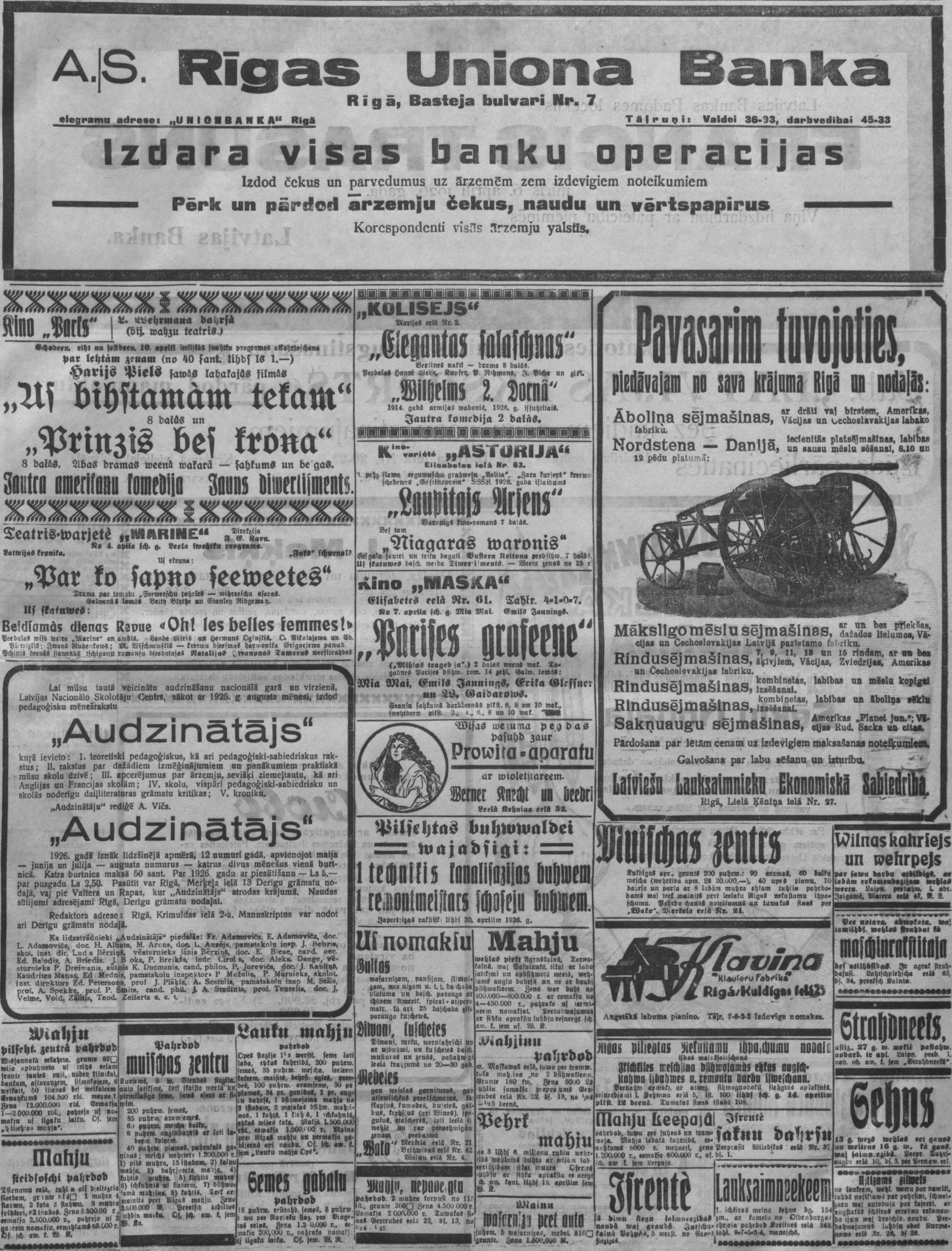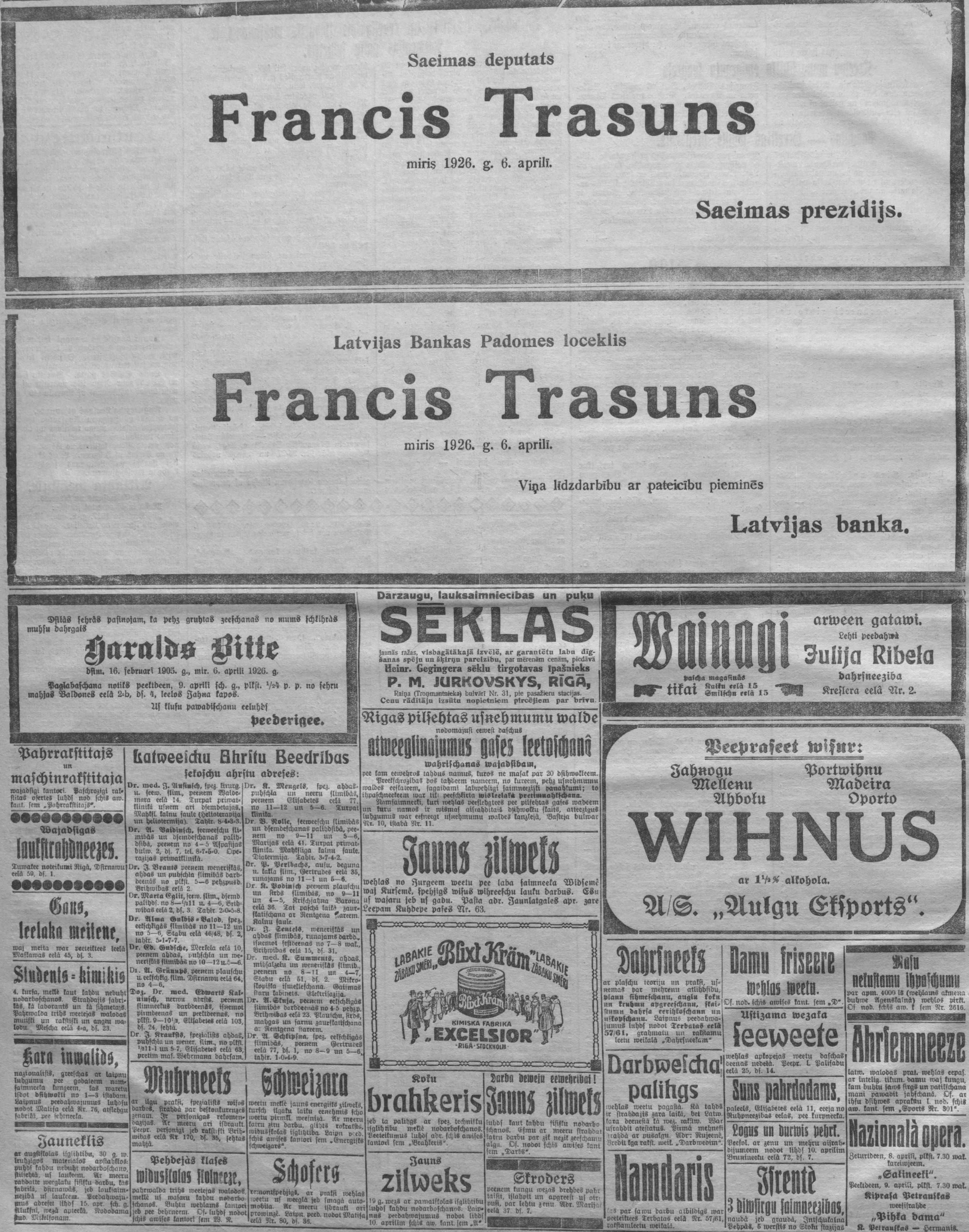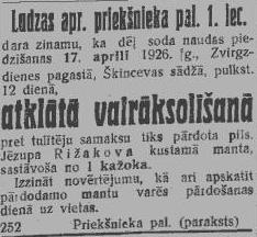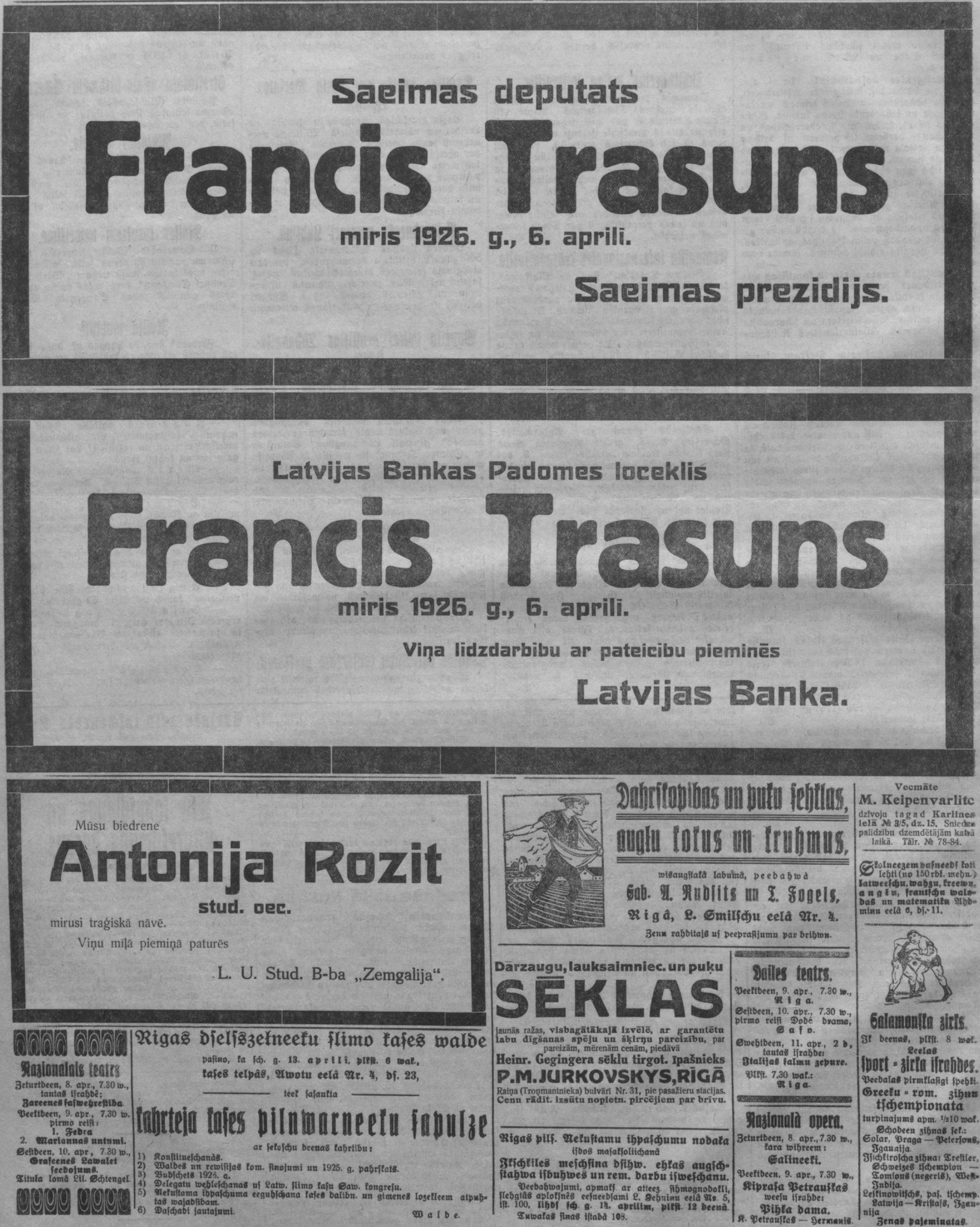 Ceturtdien, 1926. gada 8. aprīlis