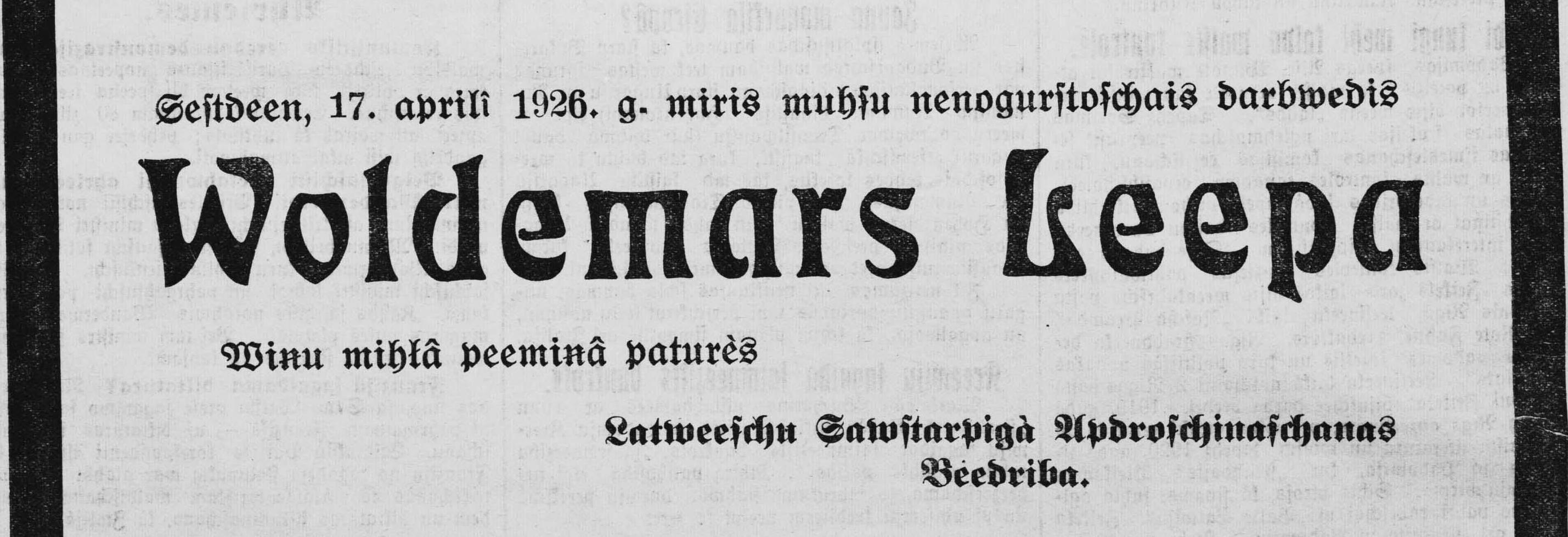 Svētdien, 1926. gada 18. aprīlis