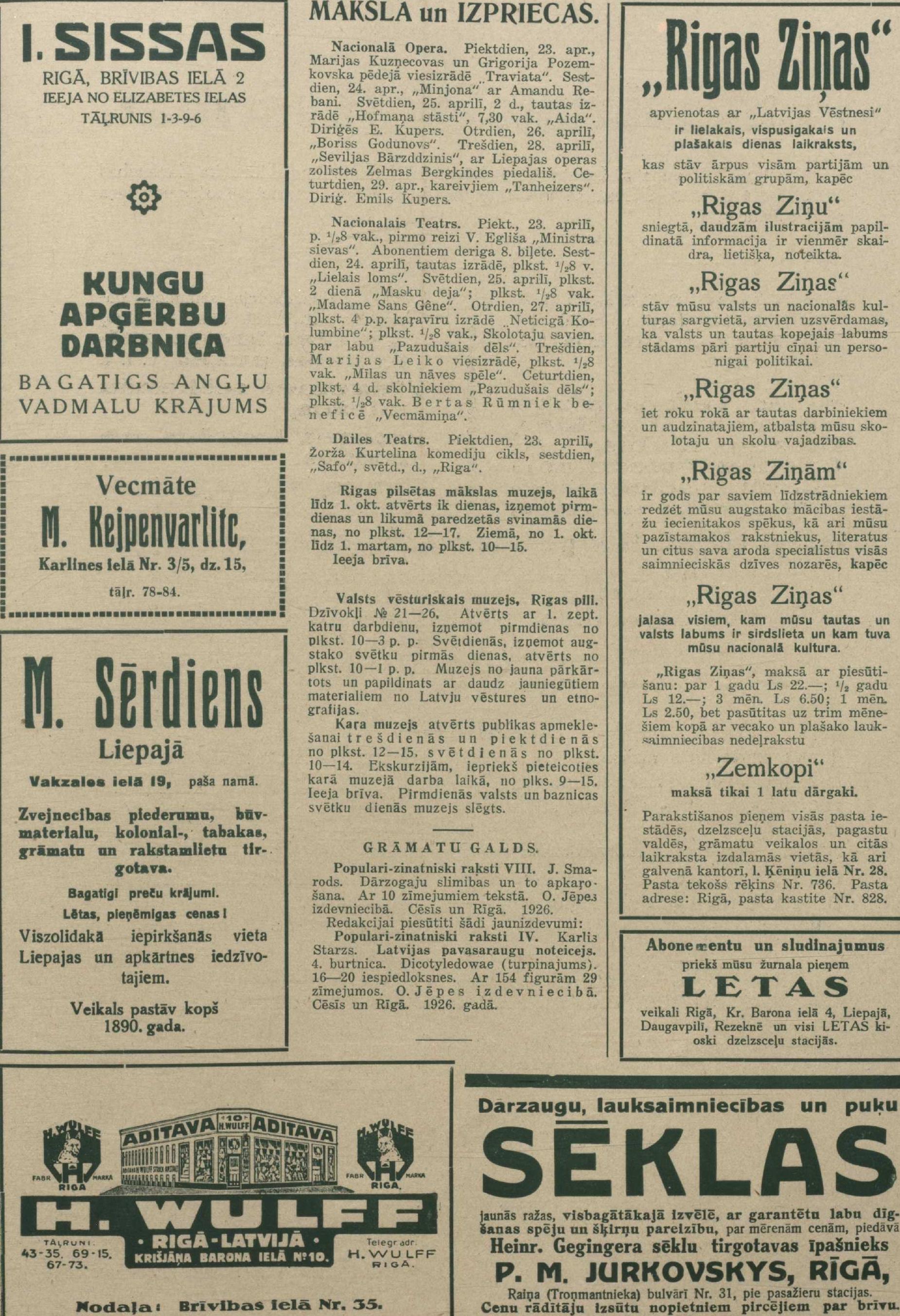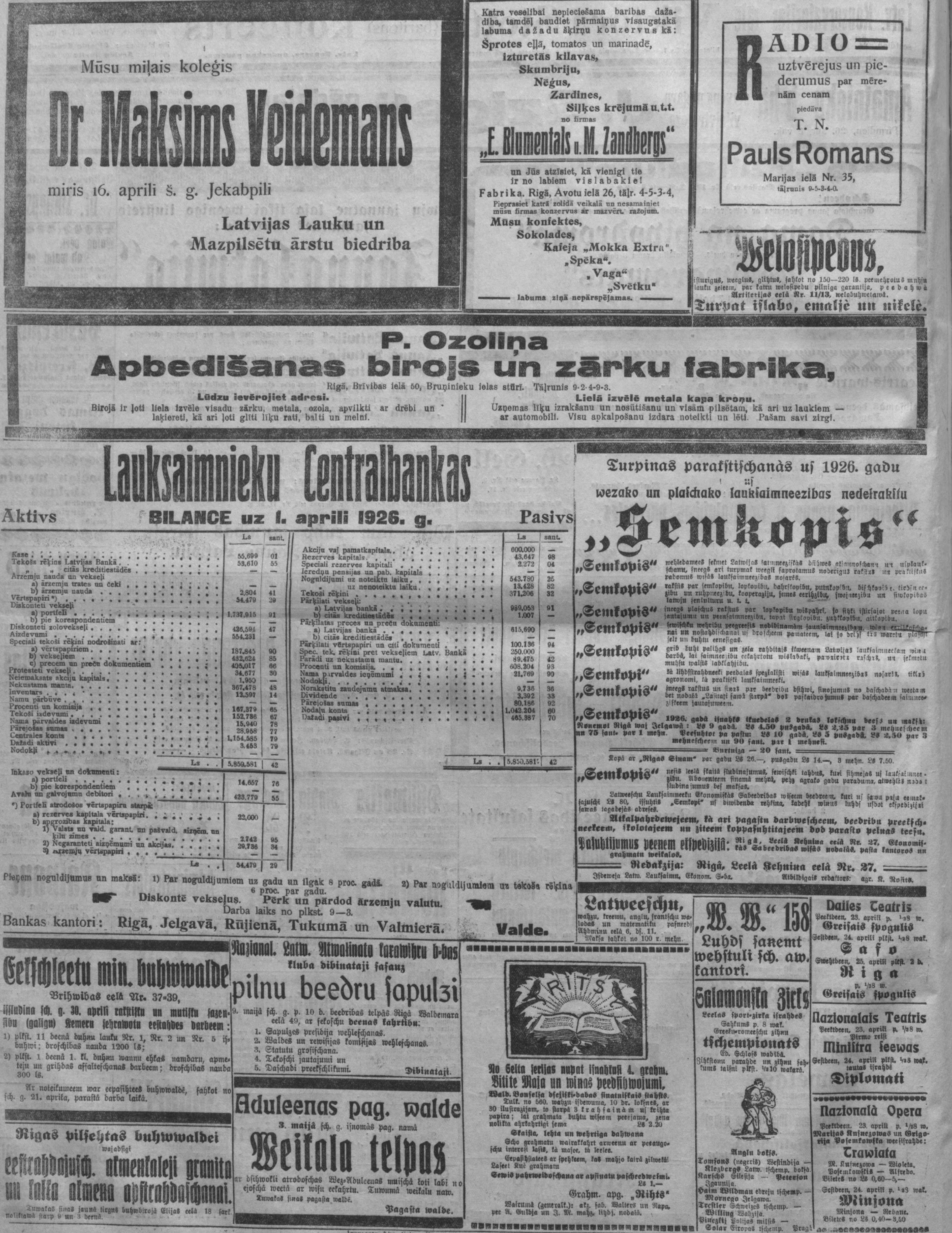 Piektdien, 1926. gada 23. aprīlis