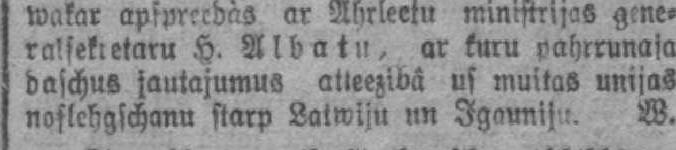 wakar apsprccdàs ar Ahrleetu mmrstrijas ģkneH. Albatn, ar kuru pahrrunaşa daschu» jautājumus atteezibâ us muitas umjaS noşlcbgschanu ftarp Latwiju nn JgŞij:. W.
