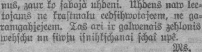 nus, zaur ko şabojà uhdeni. Uhdens naw lectojams ne krastmalu eedsihmotajeem, ne garamgahjejeem. Tas ari ir galmenais zehlonis mehschu un siwju isnihkşchanai schai upē. Ms«