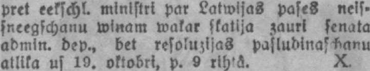 pret eekschl. ministri par Latwisas paseS nelsşneegschanu wiņam wakar ştatlja zauri admin. dep.» bet pasludināšanu atlika us 19. oktobri, p. 9 rih'â. X.
