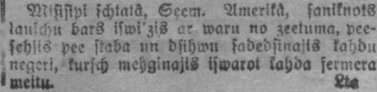 Misisipi štatā, Ziem. Amerikā, saniknots ļaužu bars izvilcis ar varu no cietuma, piesējis pie staba un dzīvu sadedzinājis kādu negeru, kurš mēģinājis izvarot kāda fermerа meitu.